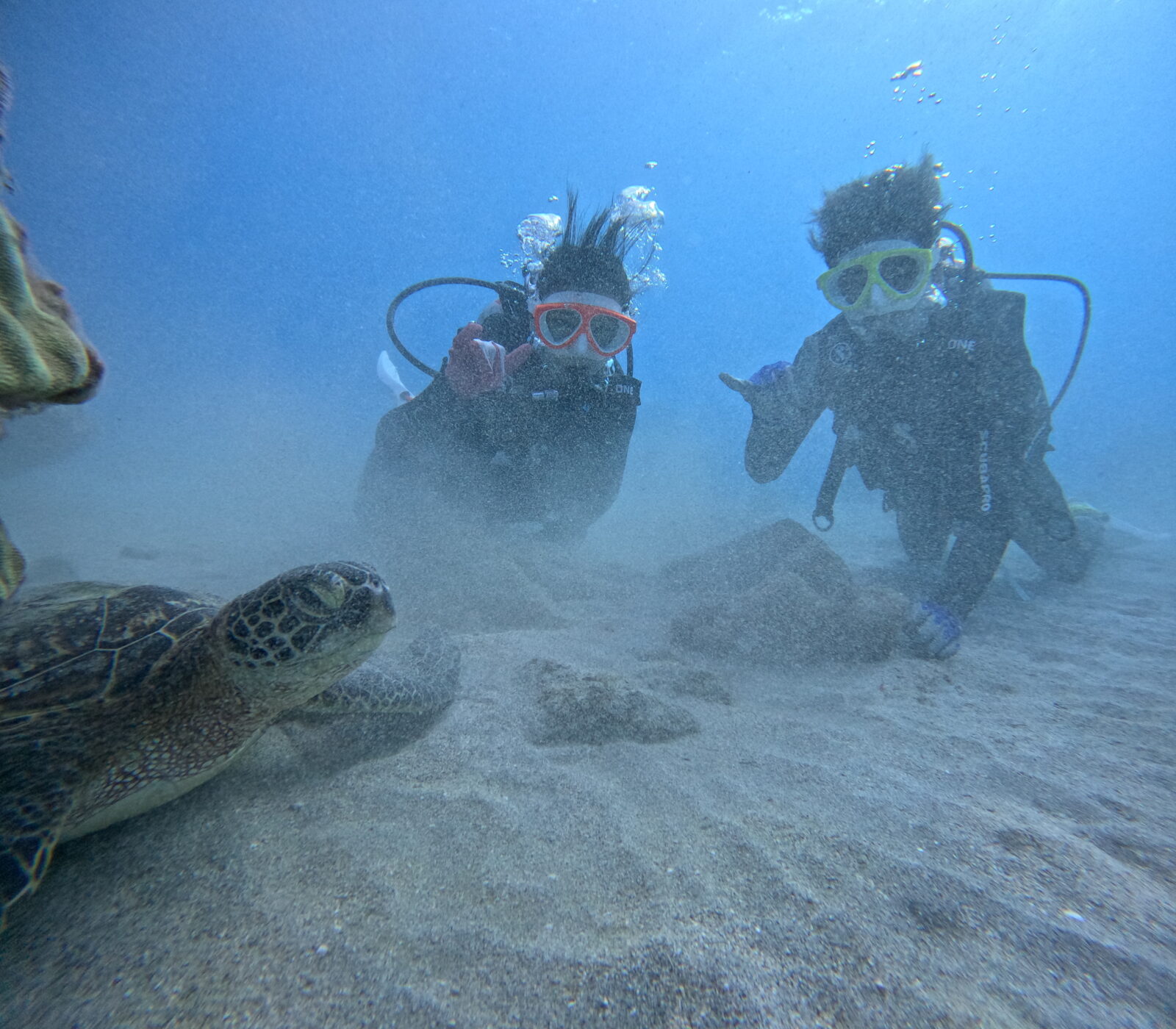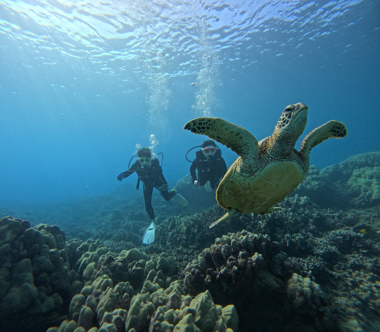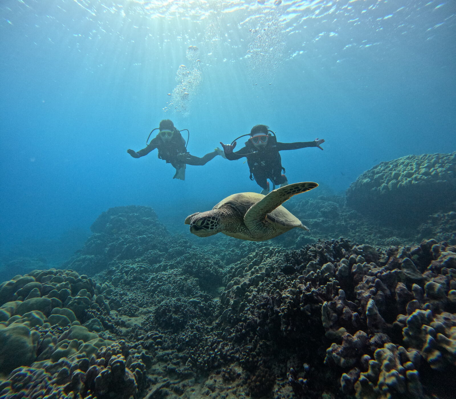 2ダイブ目は、泳いでいるホヌ様に遭遇!光が差し込んで綺麗です!