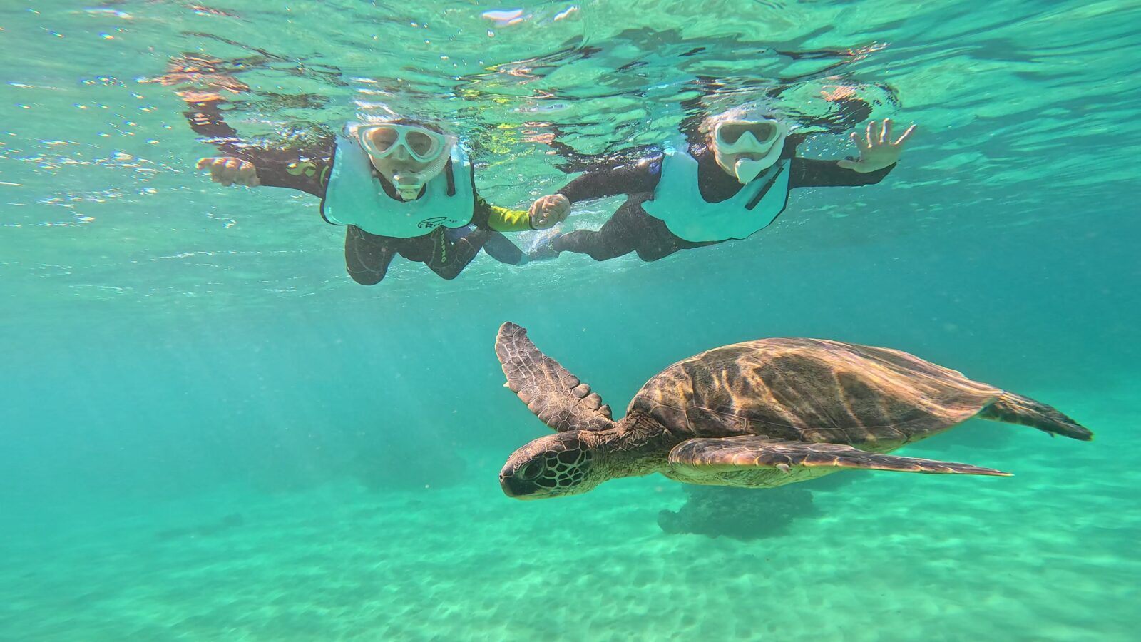 サービス精神旺盛なホヌ様でした!とっても上手にシュノーケルできました!