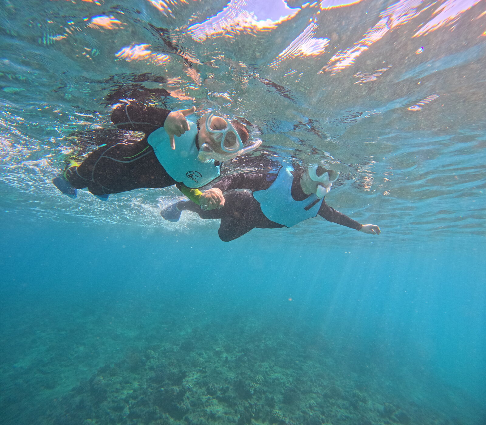 お天気良好!海のアクティビティに慣れているお二人は、一瞬で西オアフの水中世界へ!