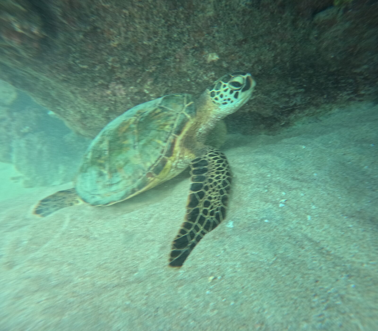 なんと、幸運を呼ぶホヌ様が、岩陰でお休み中でした!