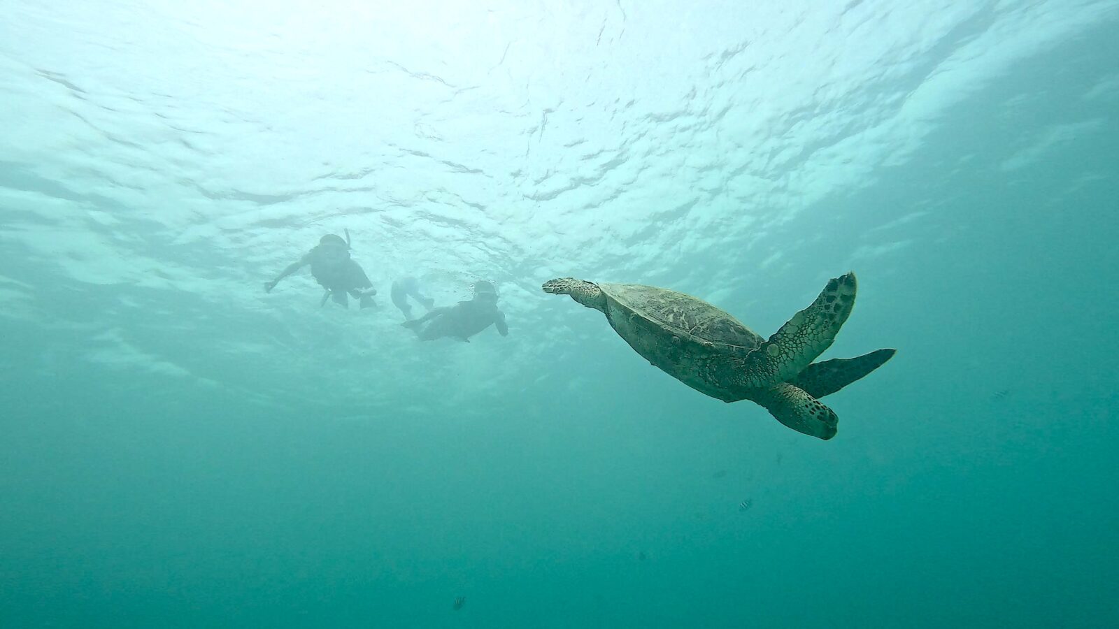 水中へ戻っていくホヌ様に向かって、ダイブ!!