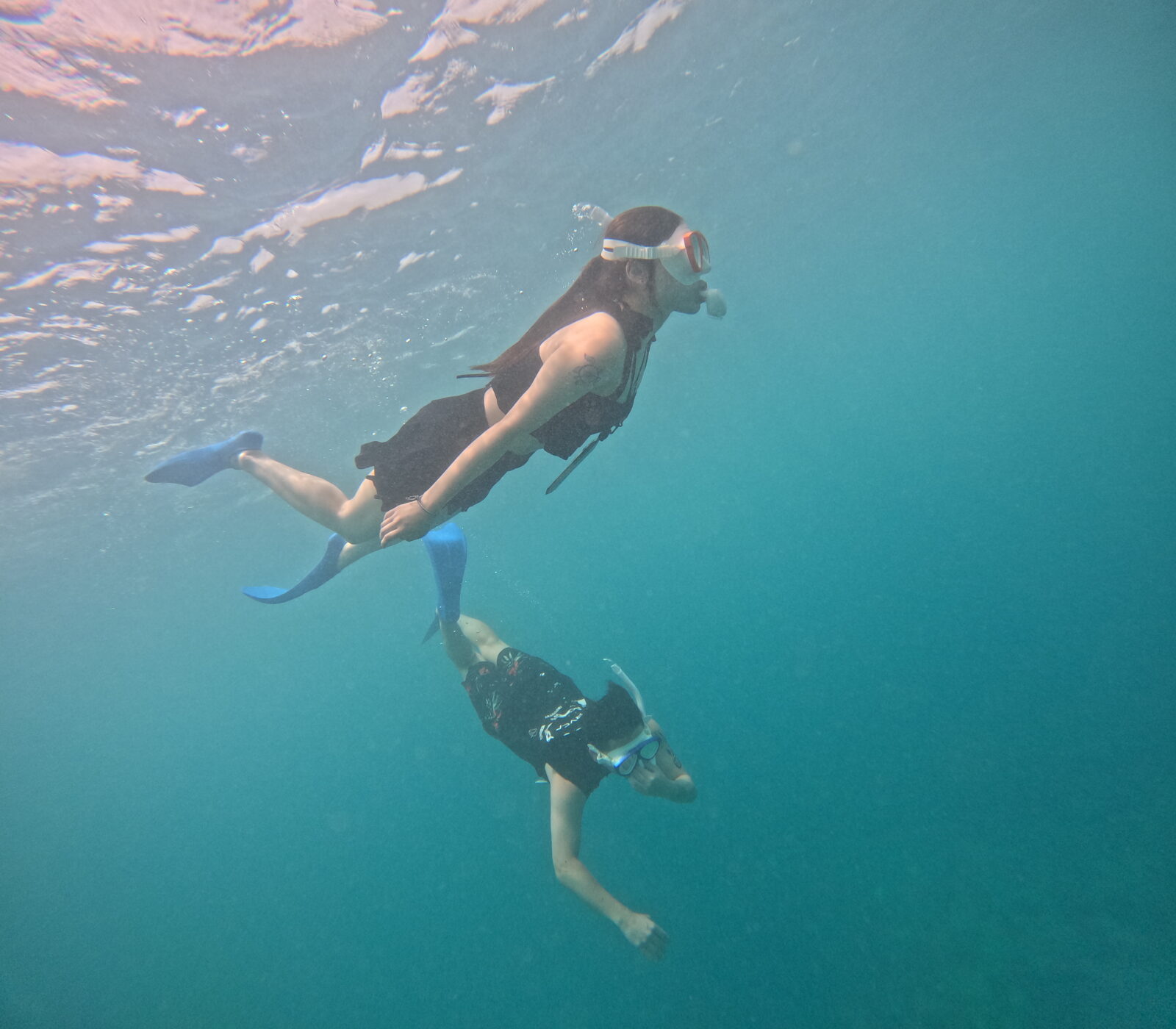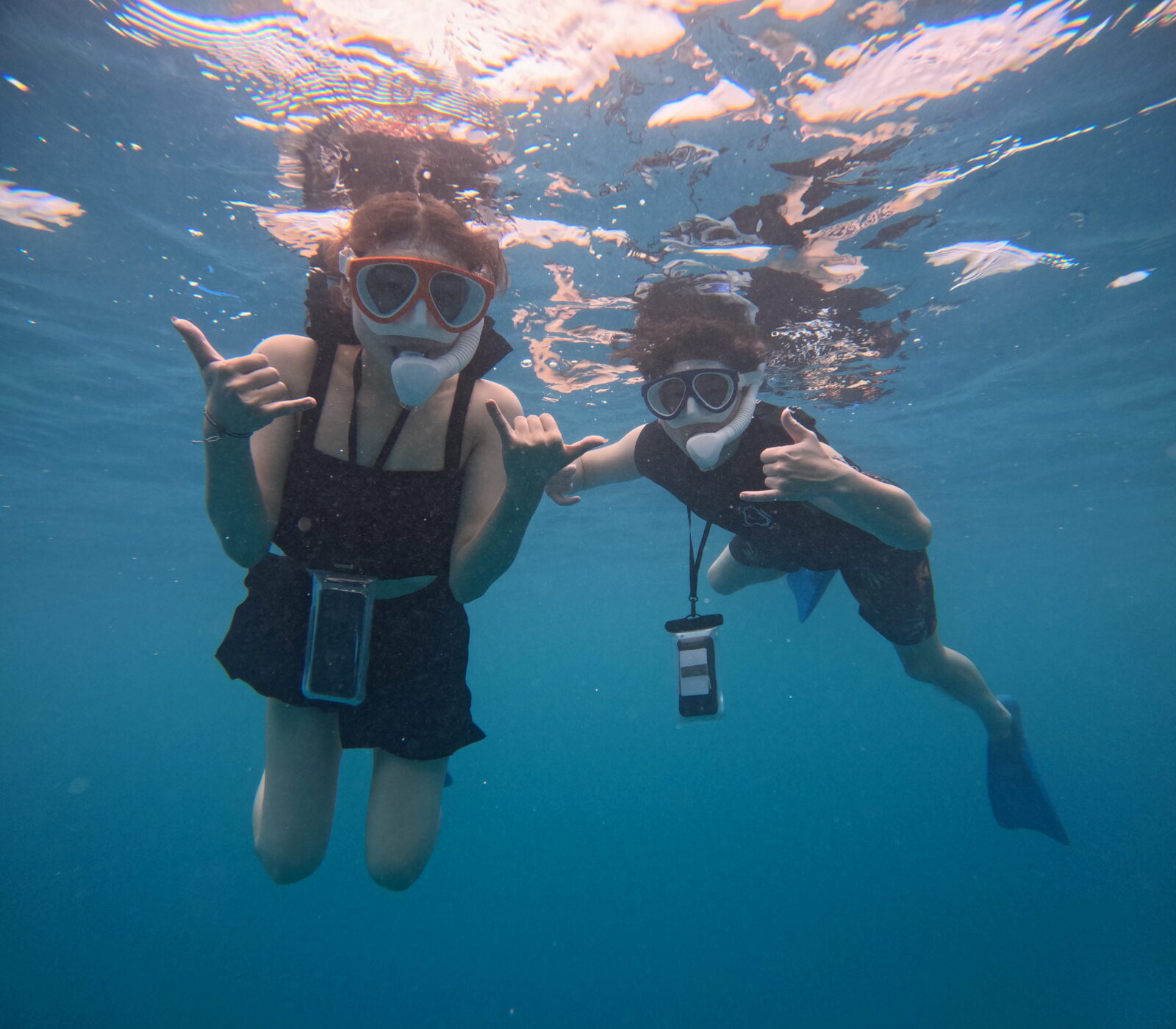 少し波があり、透明度は良くありませんでしたが、お二人とも思い思いに水中にダイブ!