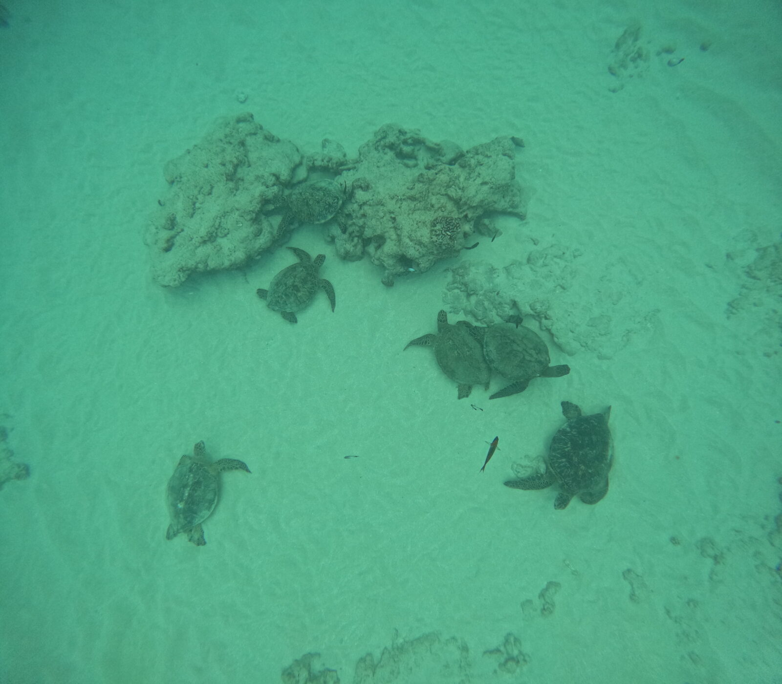 水深10Mの砂地では、ホヌ様6匹が集まってミーティングしてました!
