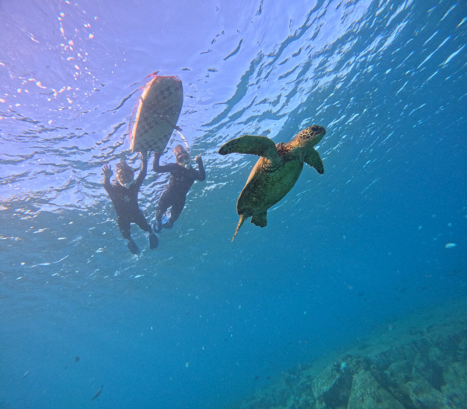 途中で水中写真撮影会をしながら、幸運を呼ぶホヌ様探しへ!