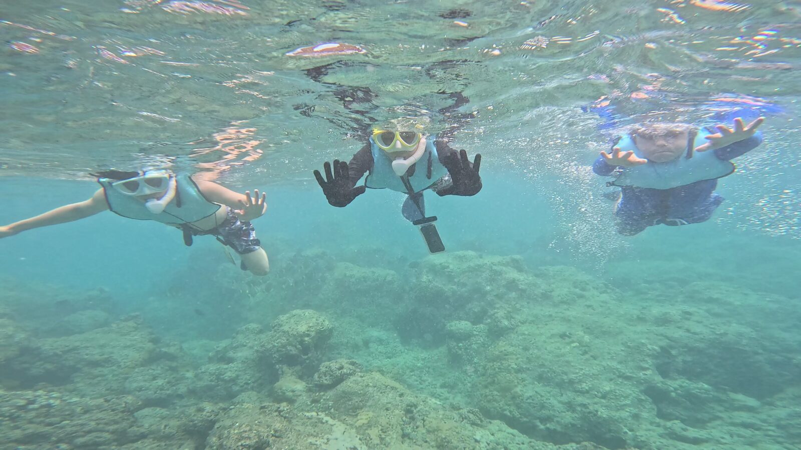 皆さん、とっても上手にシュノーケリングできました!次回は、ウミガメポイントへ行きましょう!