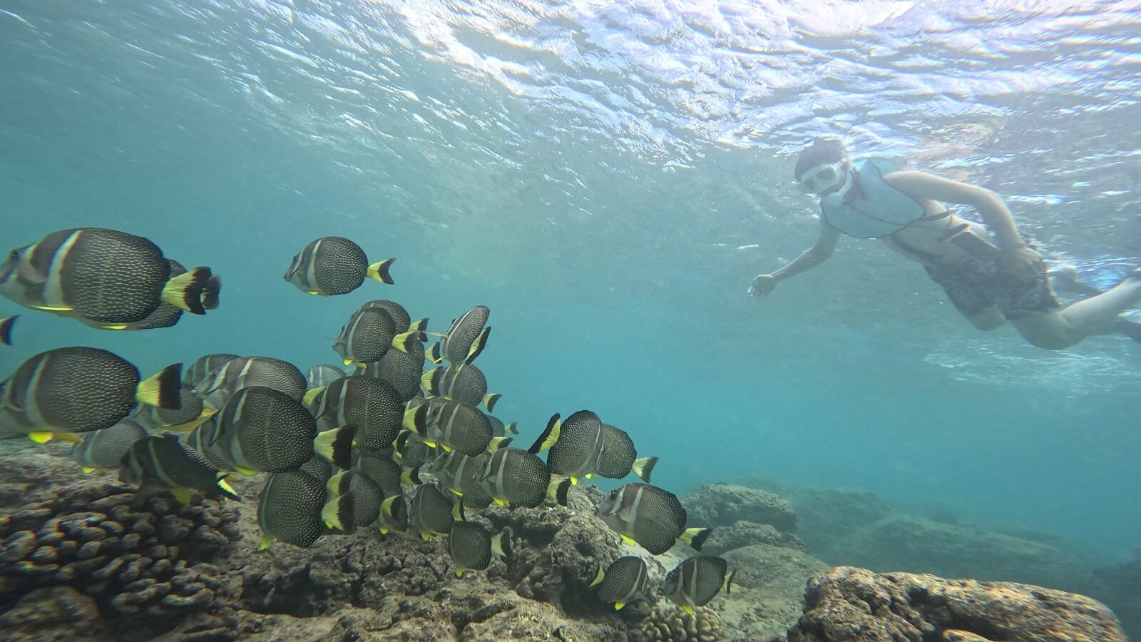 シュノーケリング経験者で海が大好きなご家族は、ハナウマ湾の沖合へ!ゴマニザの群れと泳げました!