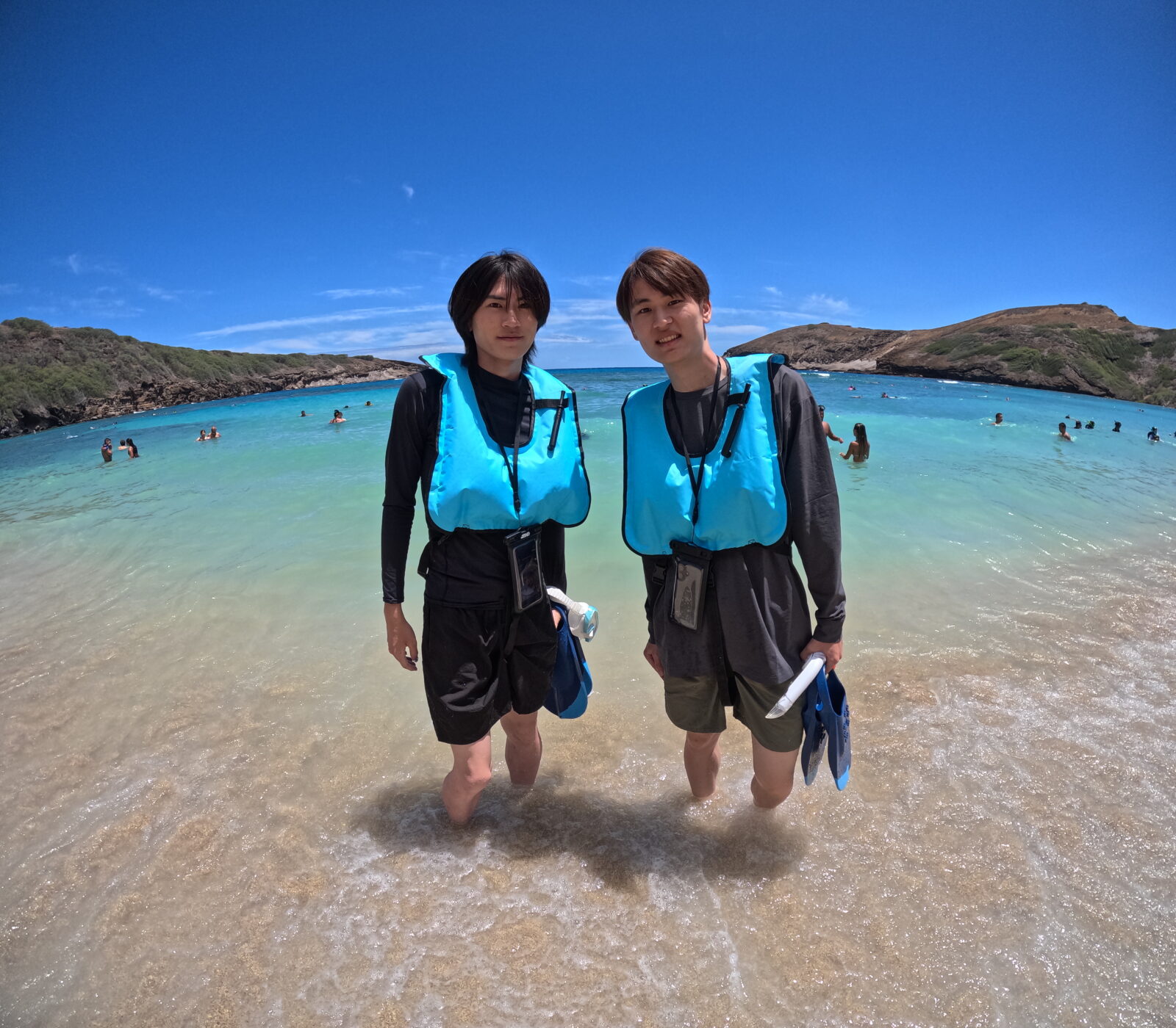 少し波があり満潮コンディションでしたが、お二人ともとっても上手だったのでハナウマ湾の沖合へ!
