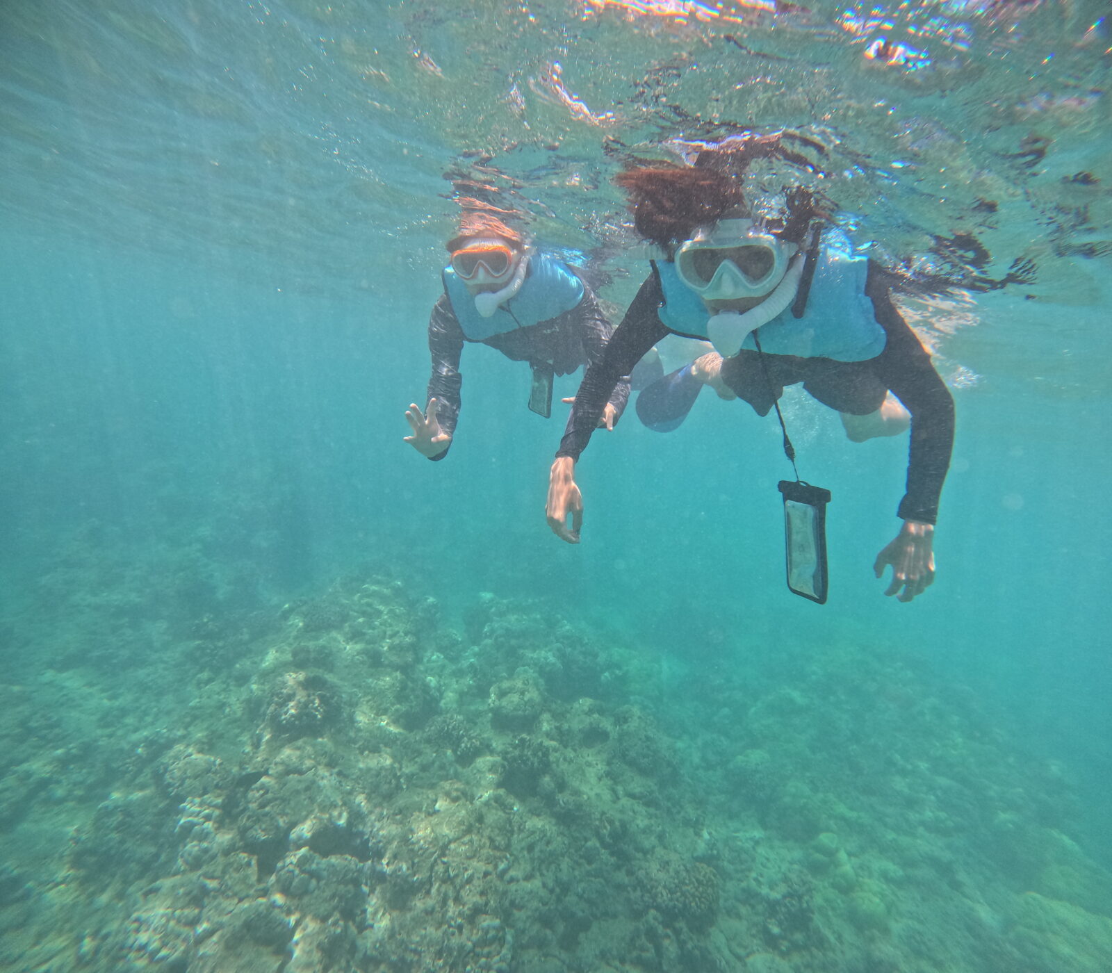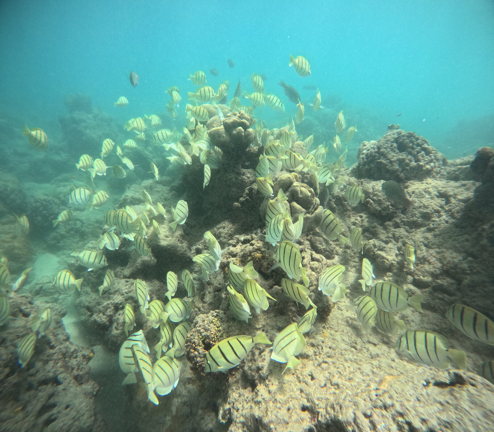 ハナウマ湾のレギュラー、シマハギの群れがお出迎えしてくれました!