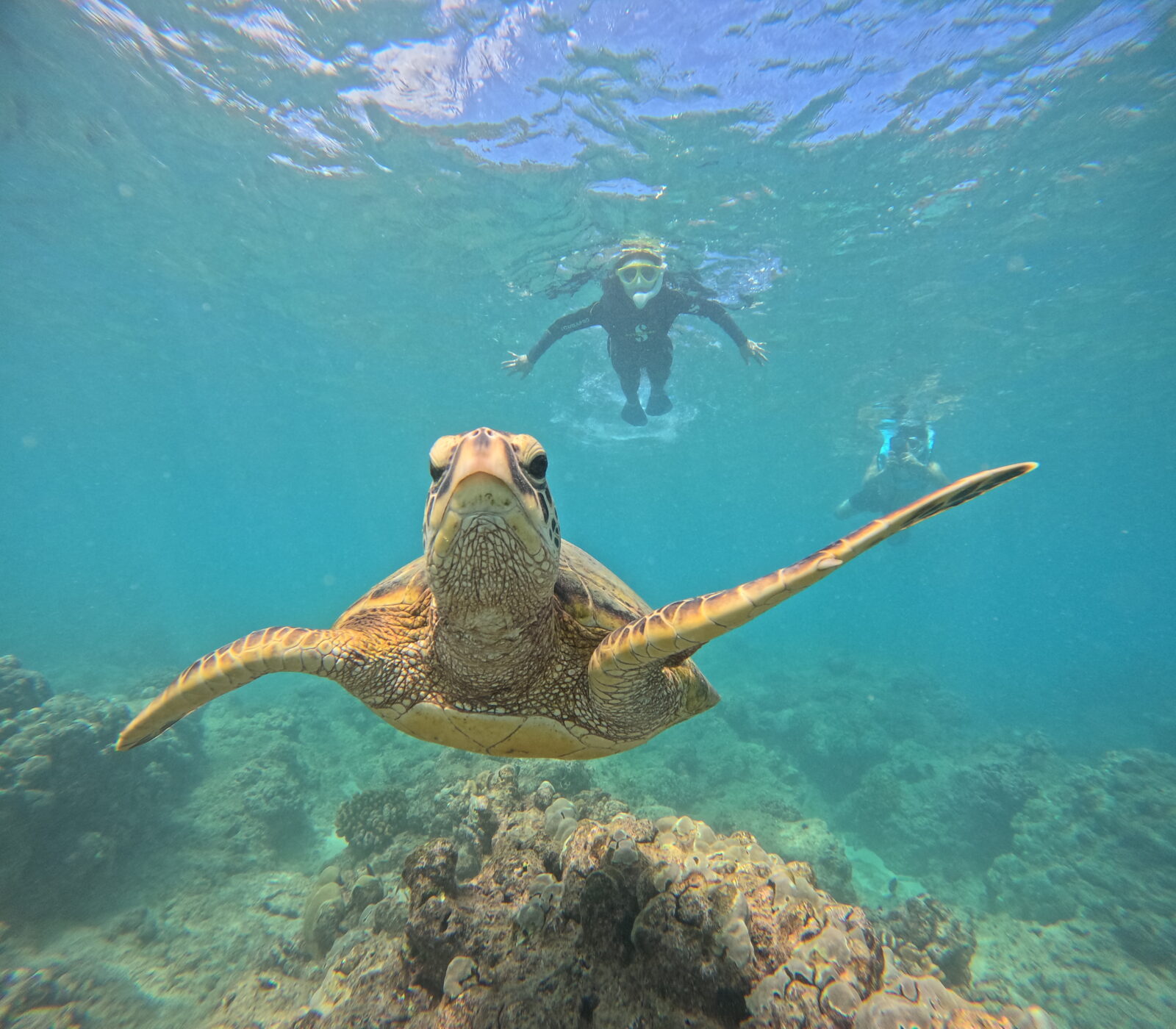 幸運を呼ぶホヌ様とも、しばらく一緒に泳げました!