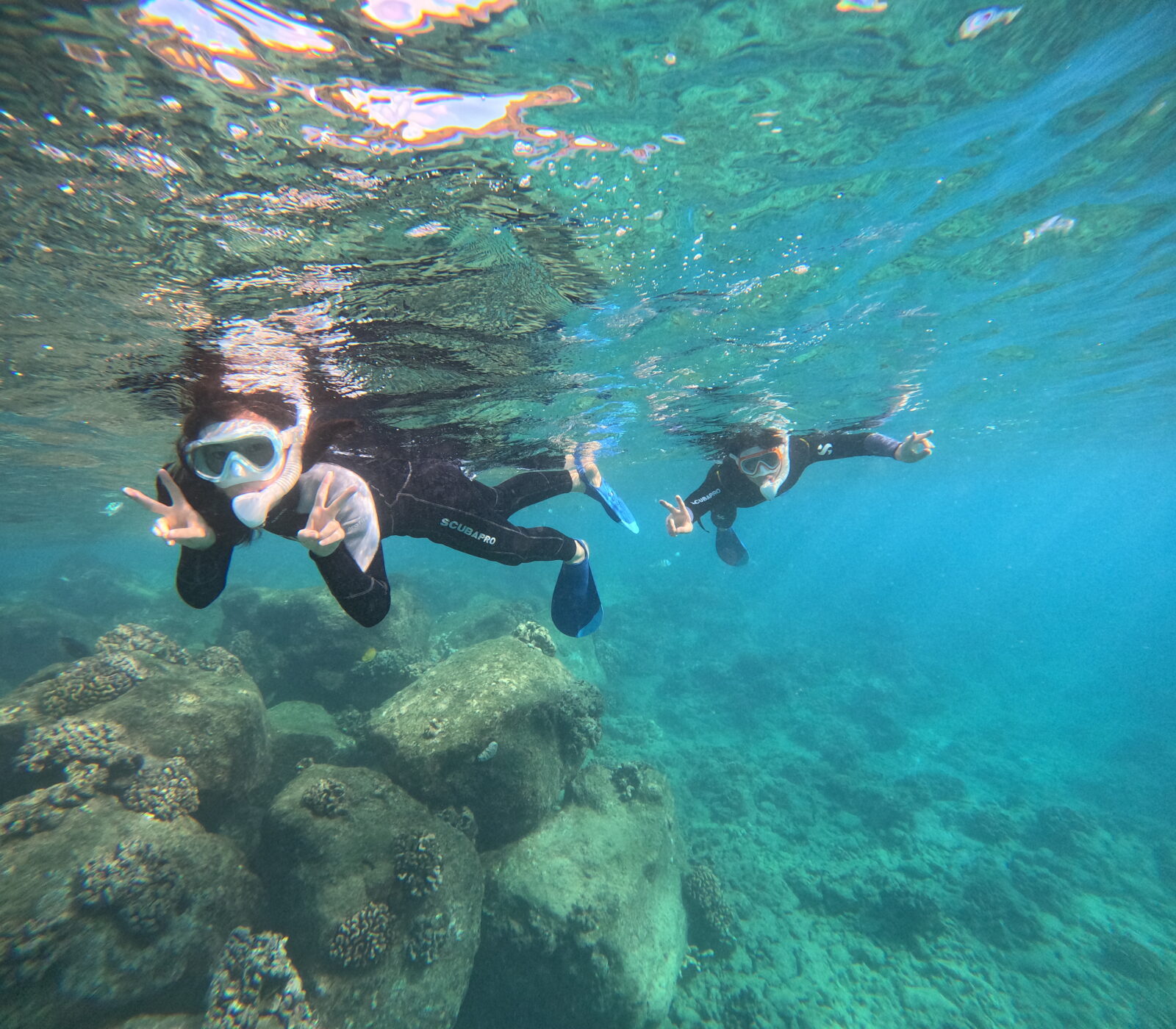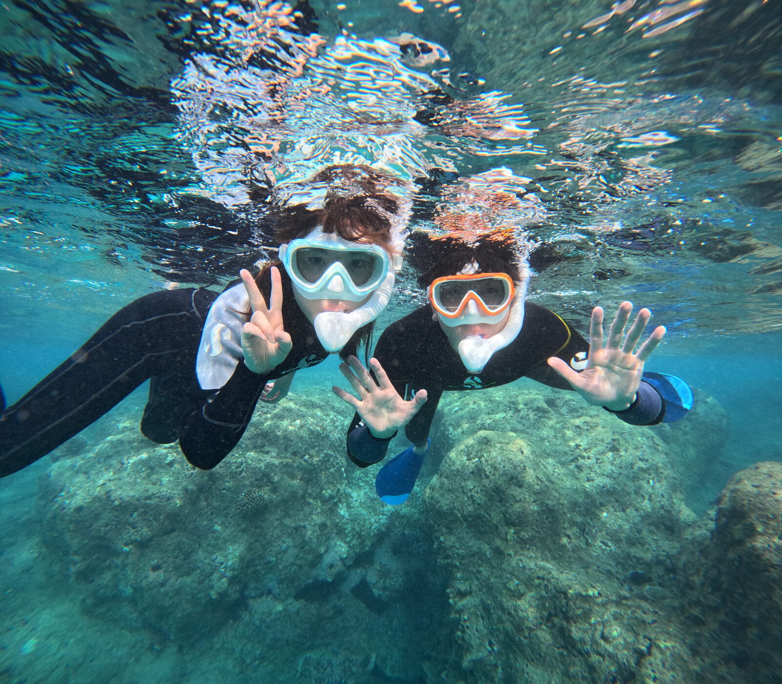 初シュノーケリングのお二人でしたが、とっても上手だったので、ハナウマ湾の沖合へ!海のコンディションが良く、透明度バツグン!