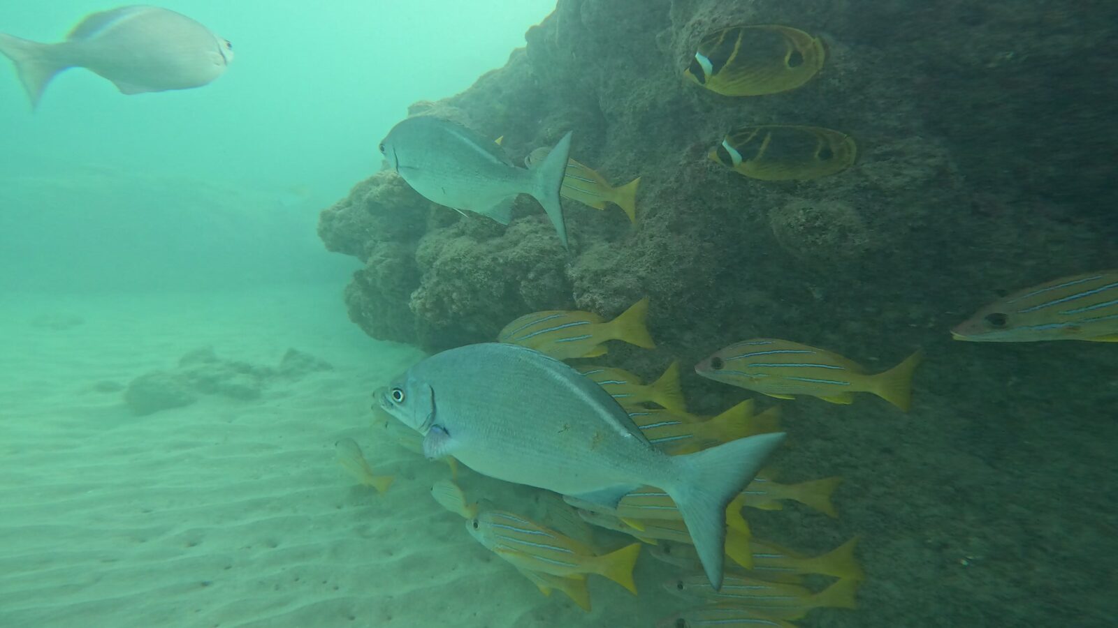 波&流れがあるコンディションだったので、ハナウマ湾内をご案内!魚たちも流されないよう、岩陰でひっそりと隠れていました。