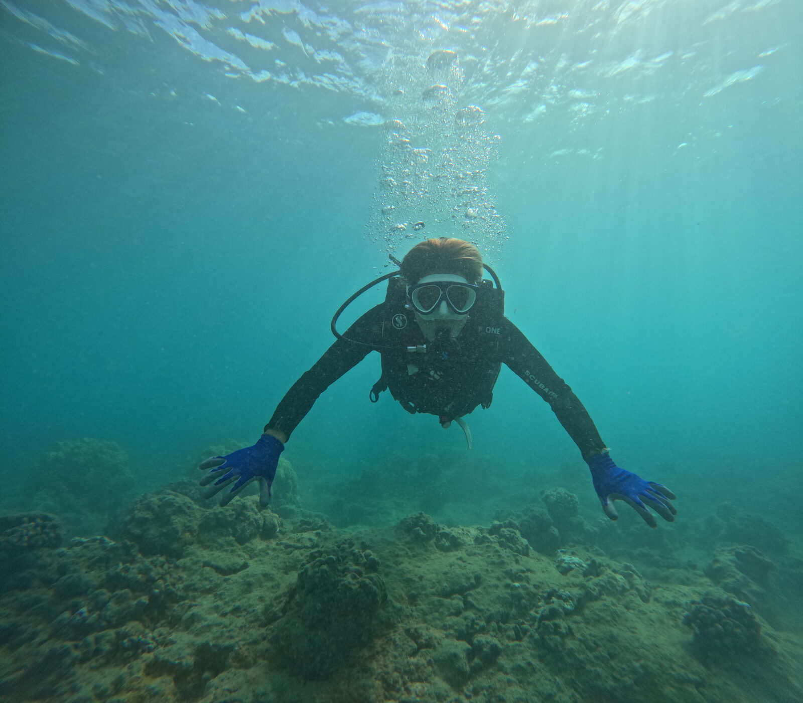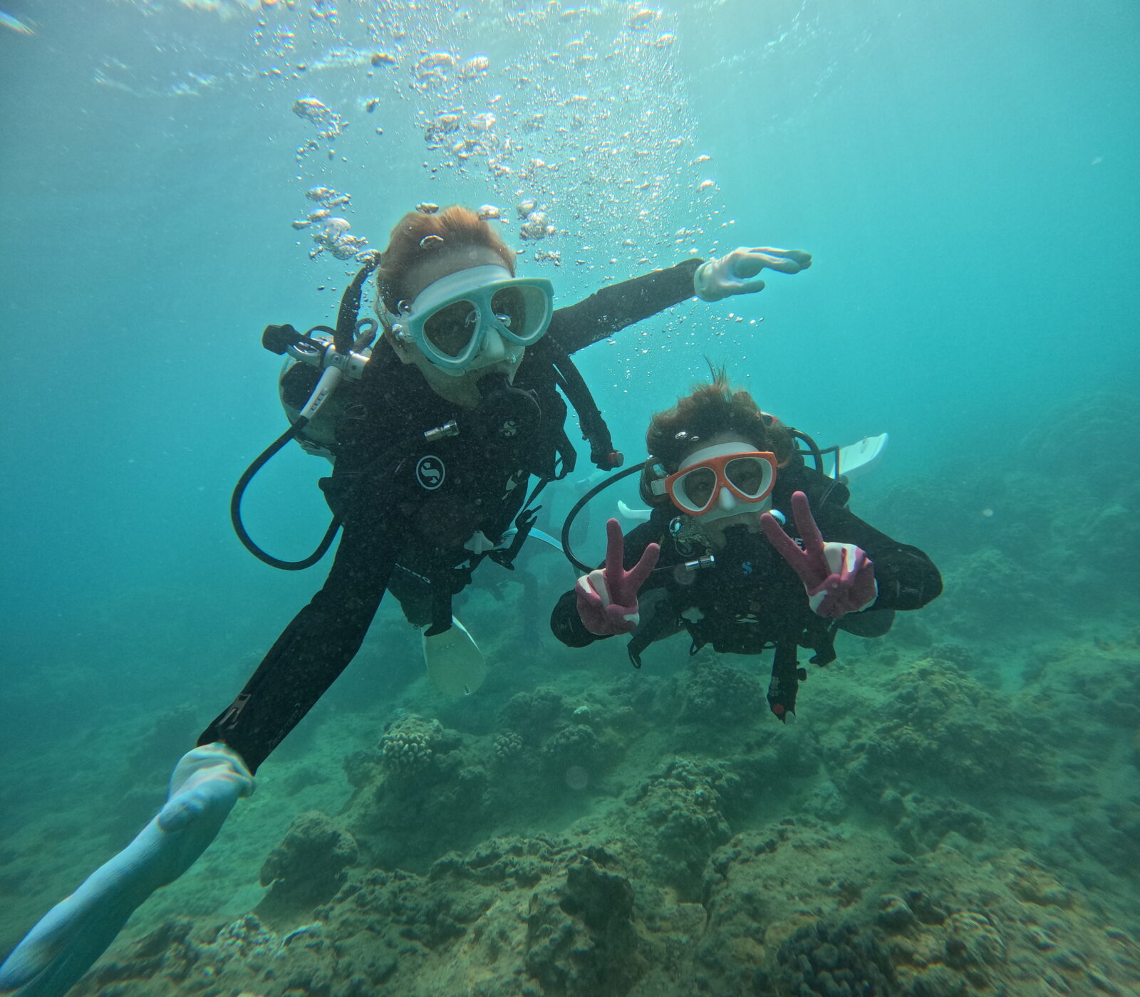 抜群の透明度の中、初ダイビング大成功!上手に潜れました!