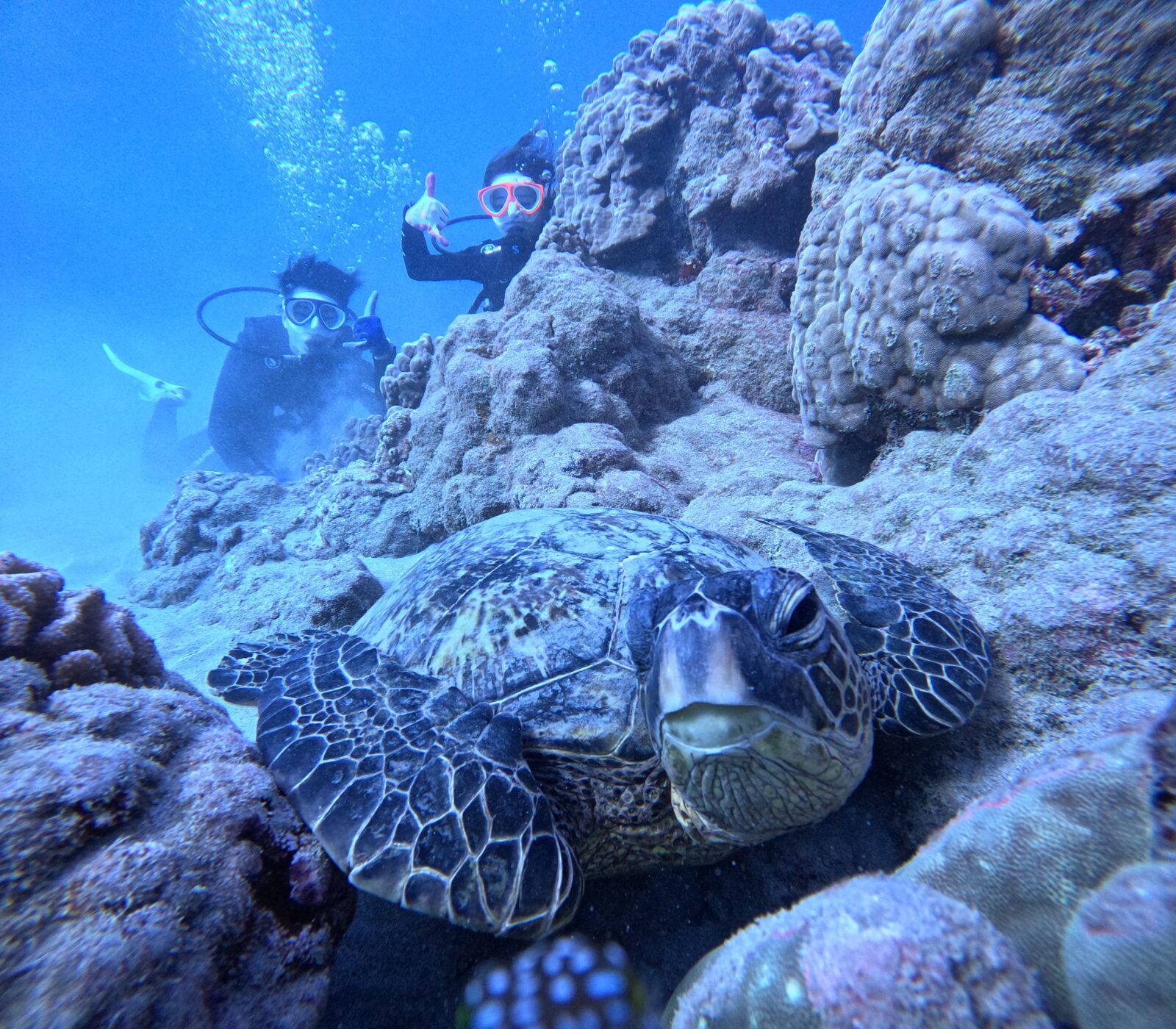 トータル3匹のホヌ様に会えた、強運のお二人!とっても上手に潜れていました!