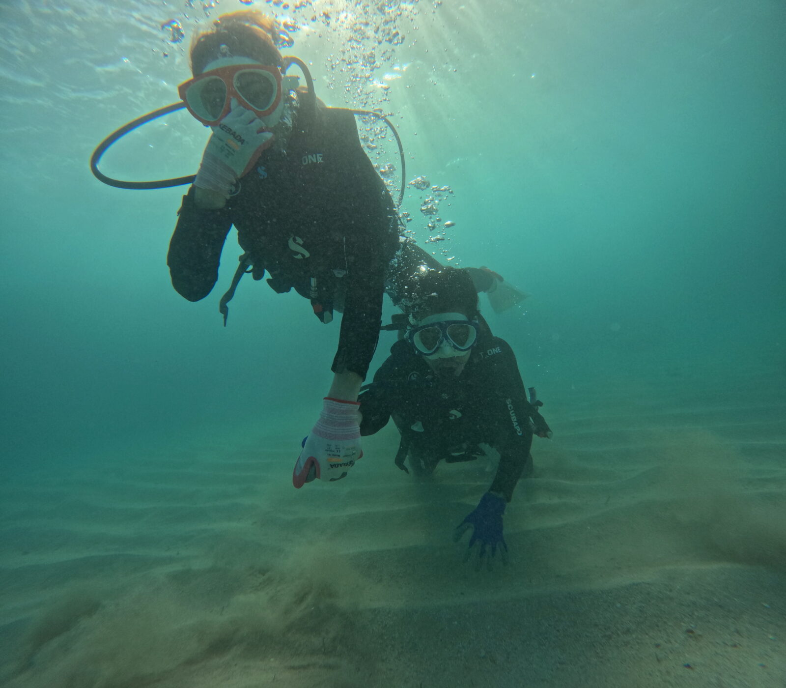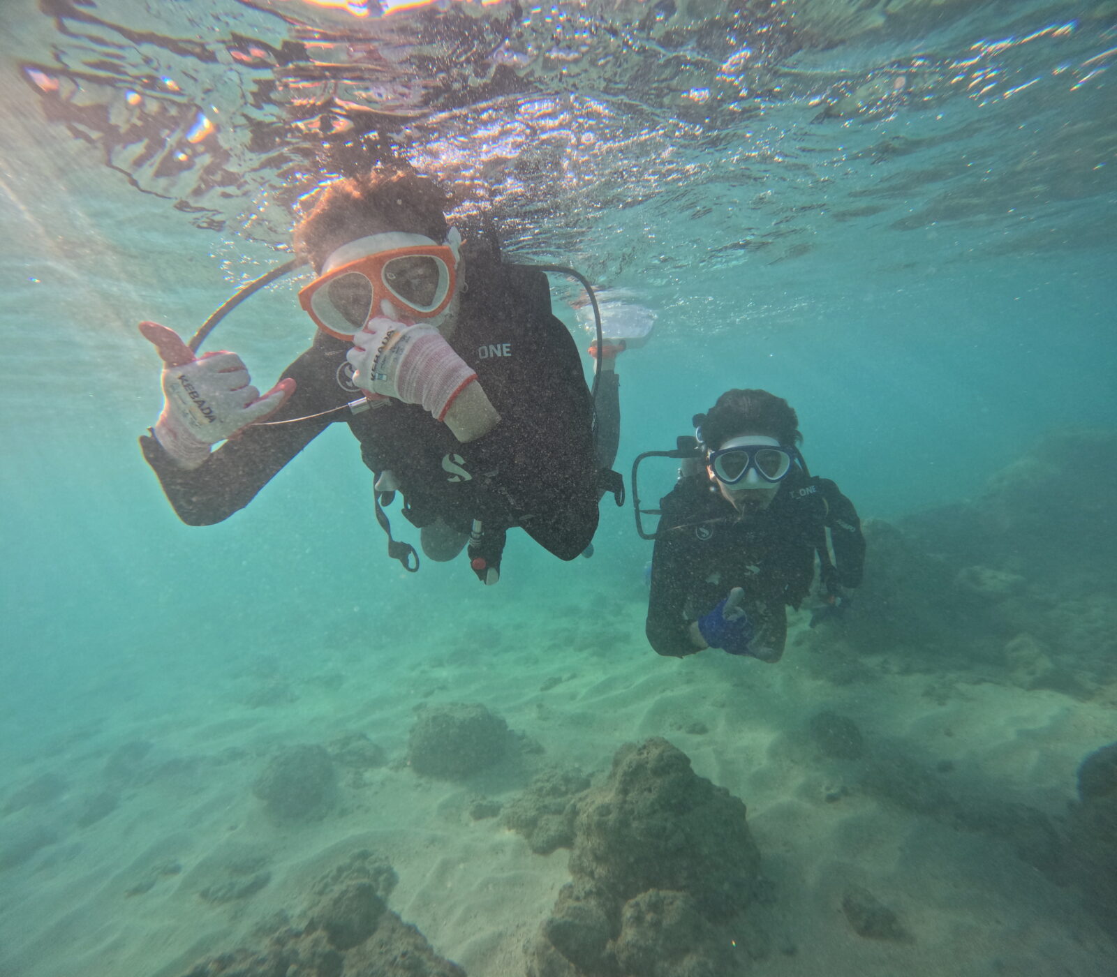 まずは、浅瀬で呼吸&耳抜きの練習。呼吸マスターに少しお時間がかかりましたが、無事に水中世界へ!