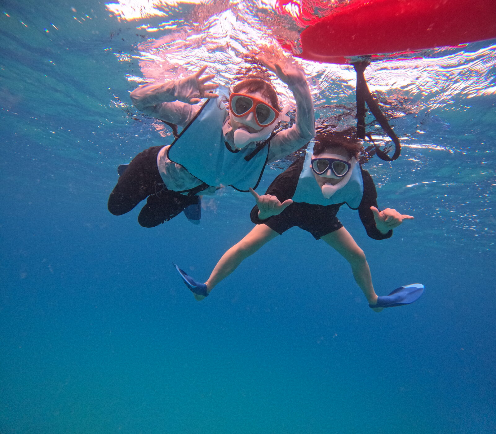 先月グアムでシュノーケリングの練習をしてきたお二人は、あっという間に水中世界へ!