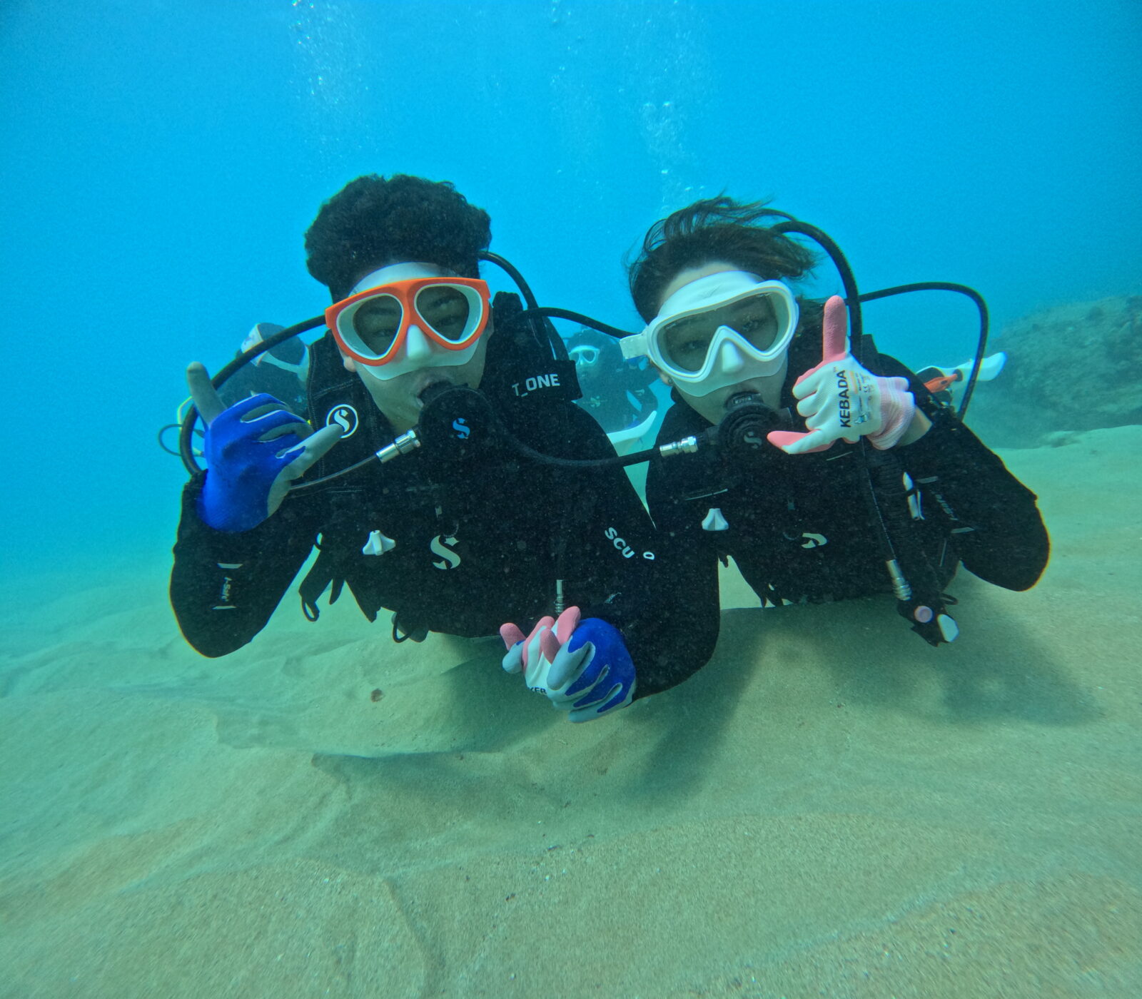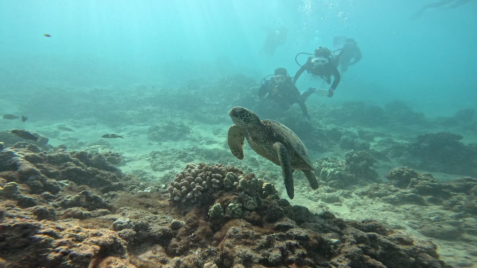 波があり少しハードなコンディションでしたが、去年沖縄で体験ダイビングを経験したお二人には、No Problem! 無事に水中ブッタ様にもご対面できました!