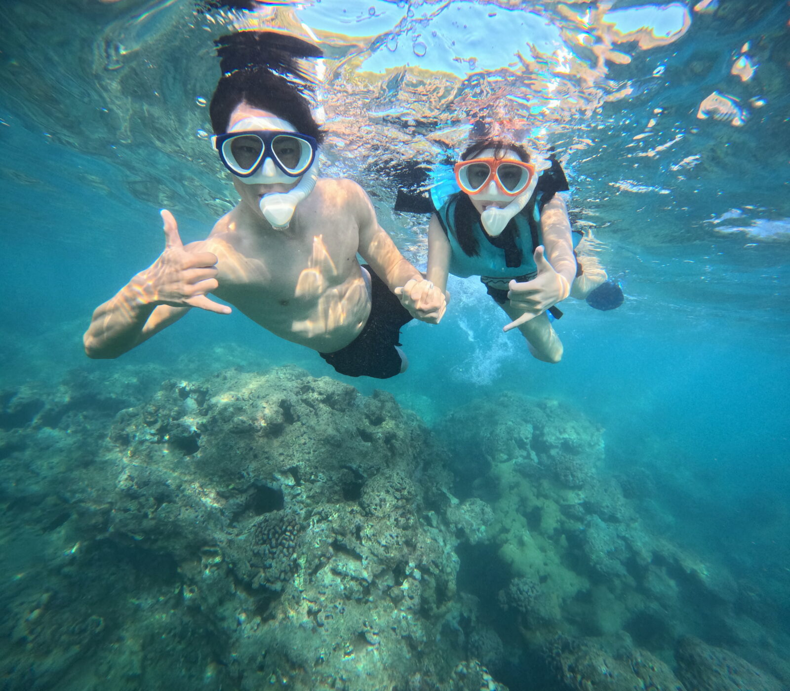 少し不安そうな奥様でしたが、旦那様のエスコートでハナウマ湾の沖合へ!とっても上手にシュノーケリングできました!