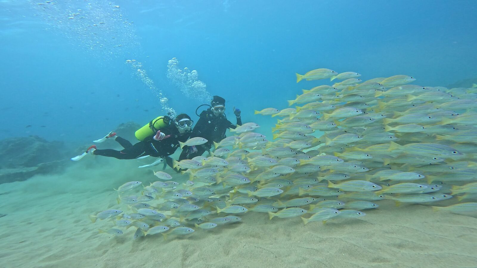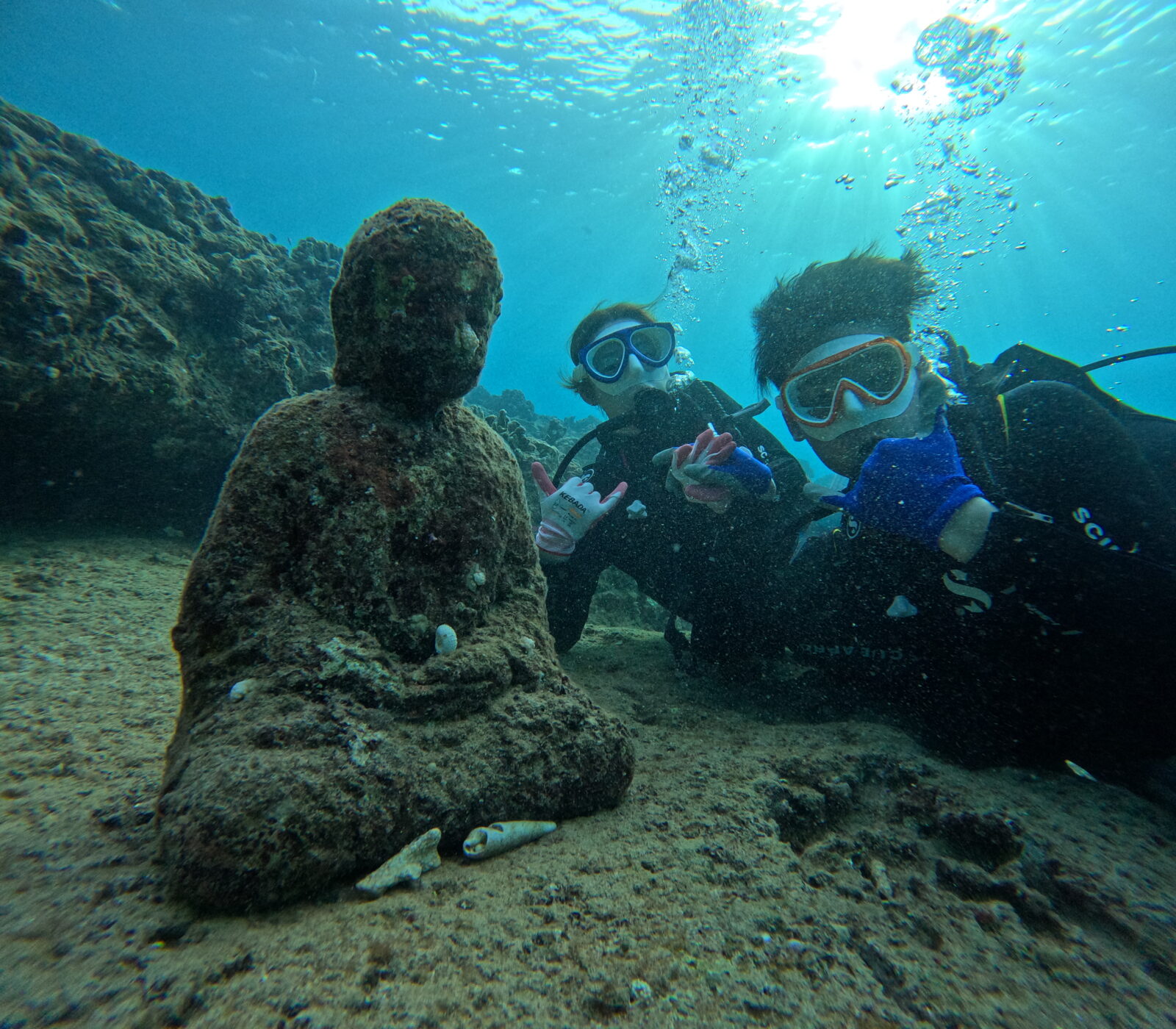 波もなく、ダイビング日和!初ダイビングで少し怖くなってしまった奥様も、しっかり練習をして、無事に水中ブッタ様にご対面!