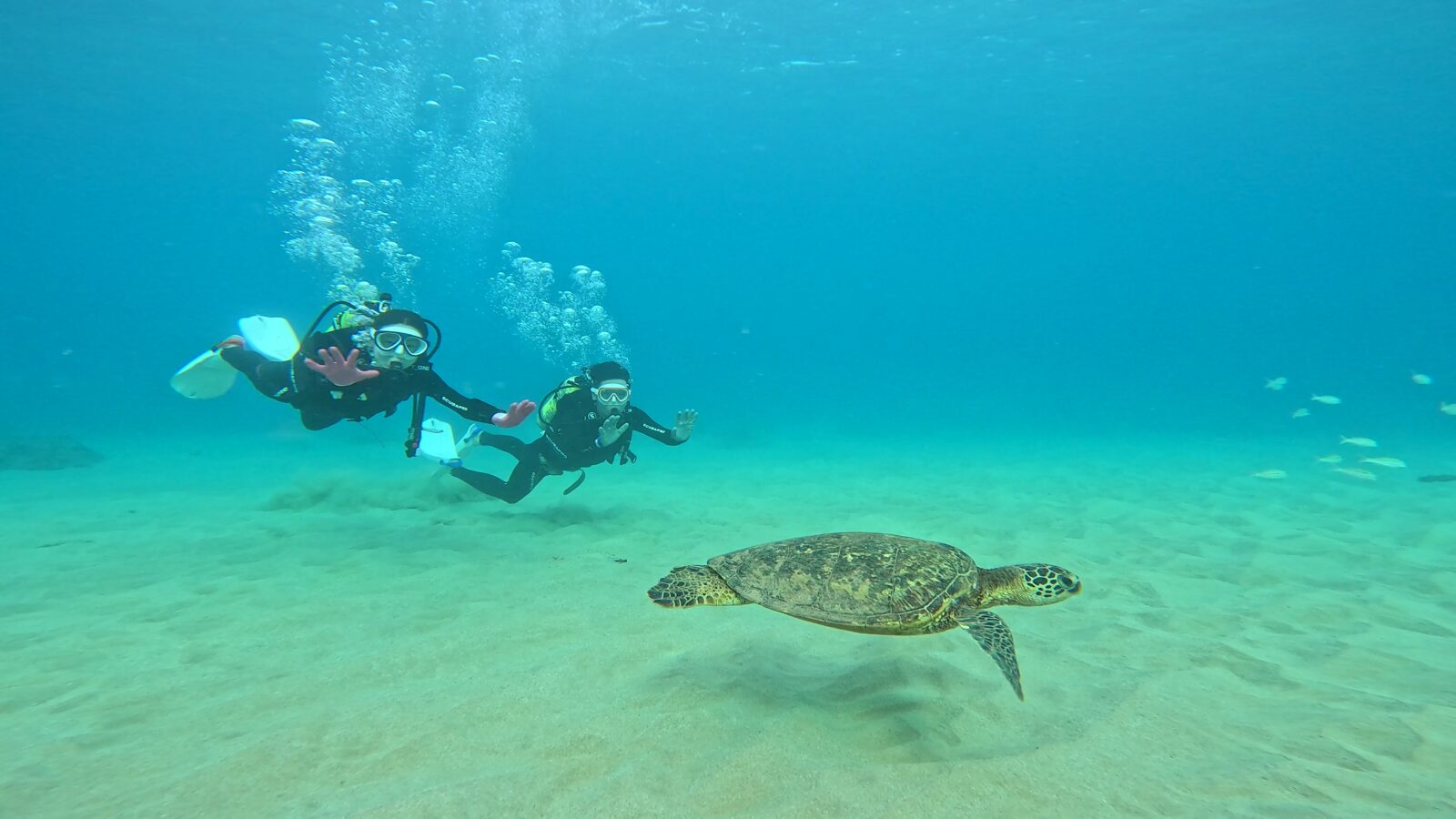 幸運を呼ぶホヌ様とも一緒に泳げました!