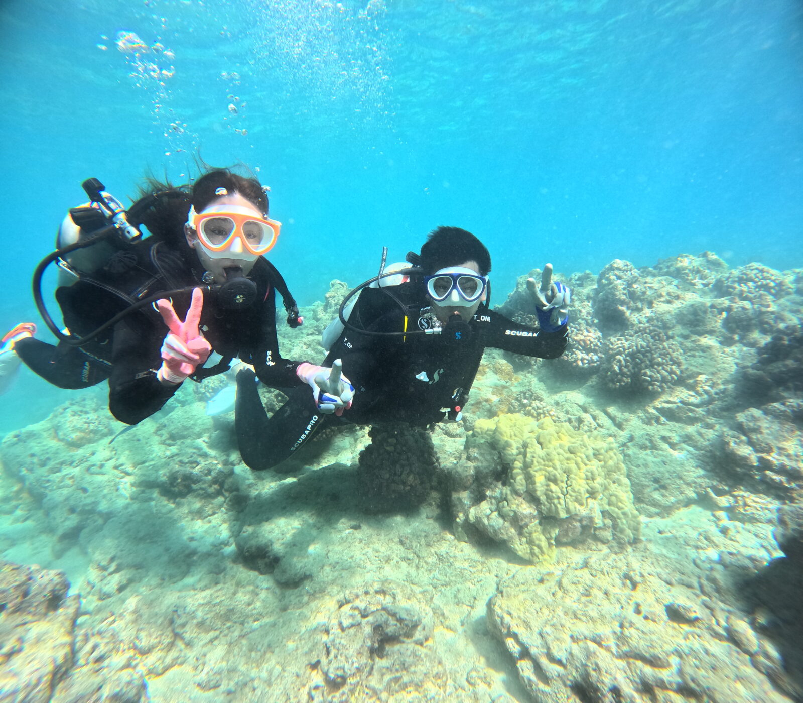 お二人の初ダイビング、大成功!一瞬でしたが、泳いでいるホヌ様に会えましたね!