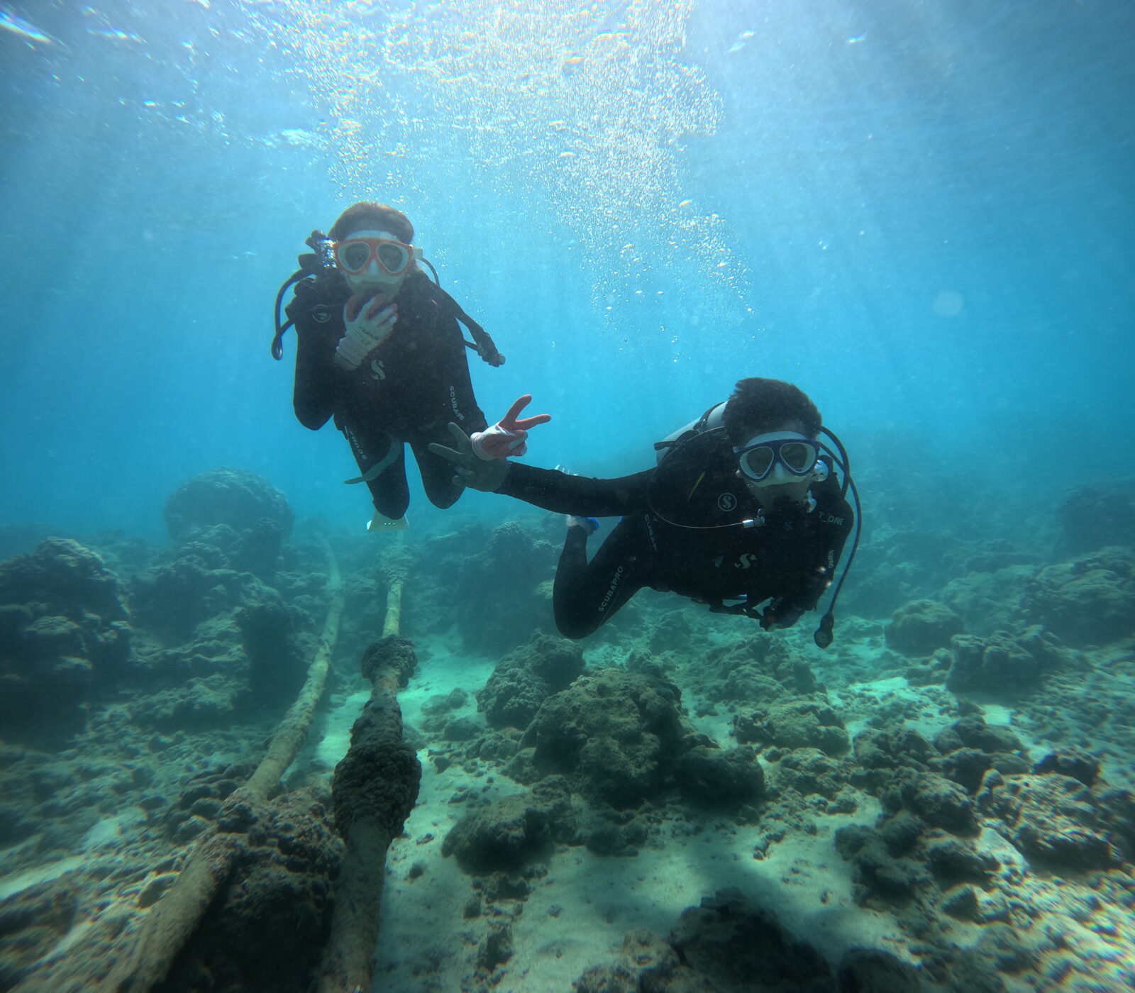 お天気良好!波なし!流れなし!耳抜きに苦戦していた奥様も、無事にハナウマ湾の沖合へ!太陽の光がキラッキラ〜