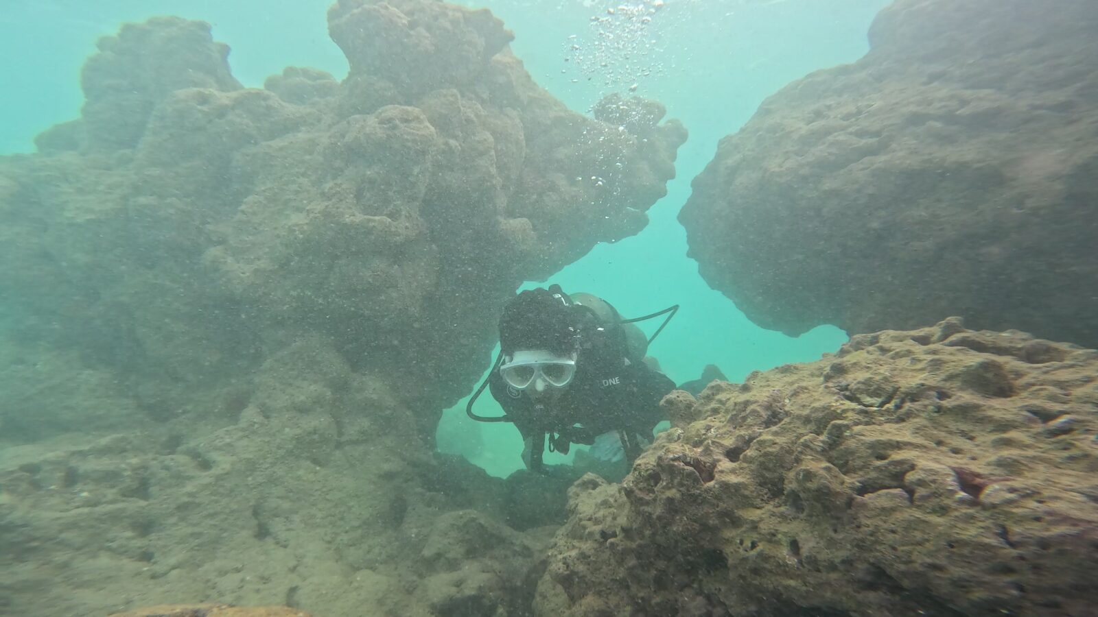 耳抜きで苦戦していた旦那様の、岩穴を潜ったり上手に潜れていました!