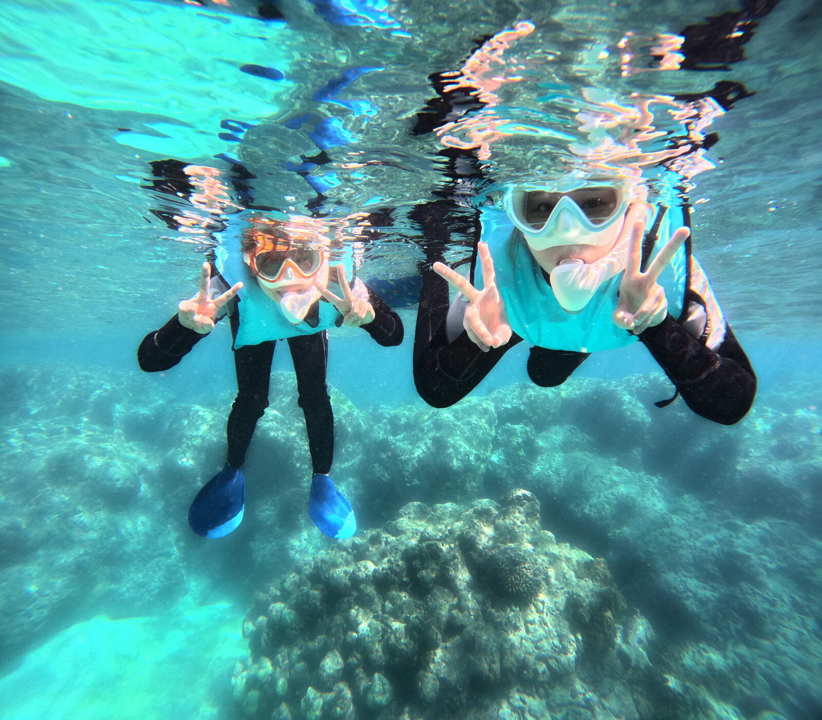 トータル3匹のホヌ様に会えた、超ラッキーガールズ!とっても上手にシュノーケリングできました!