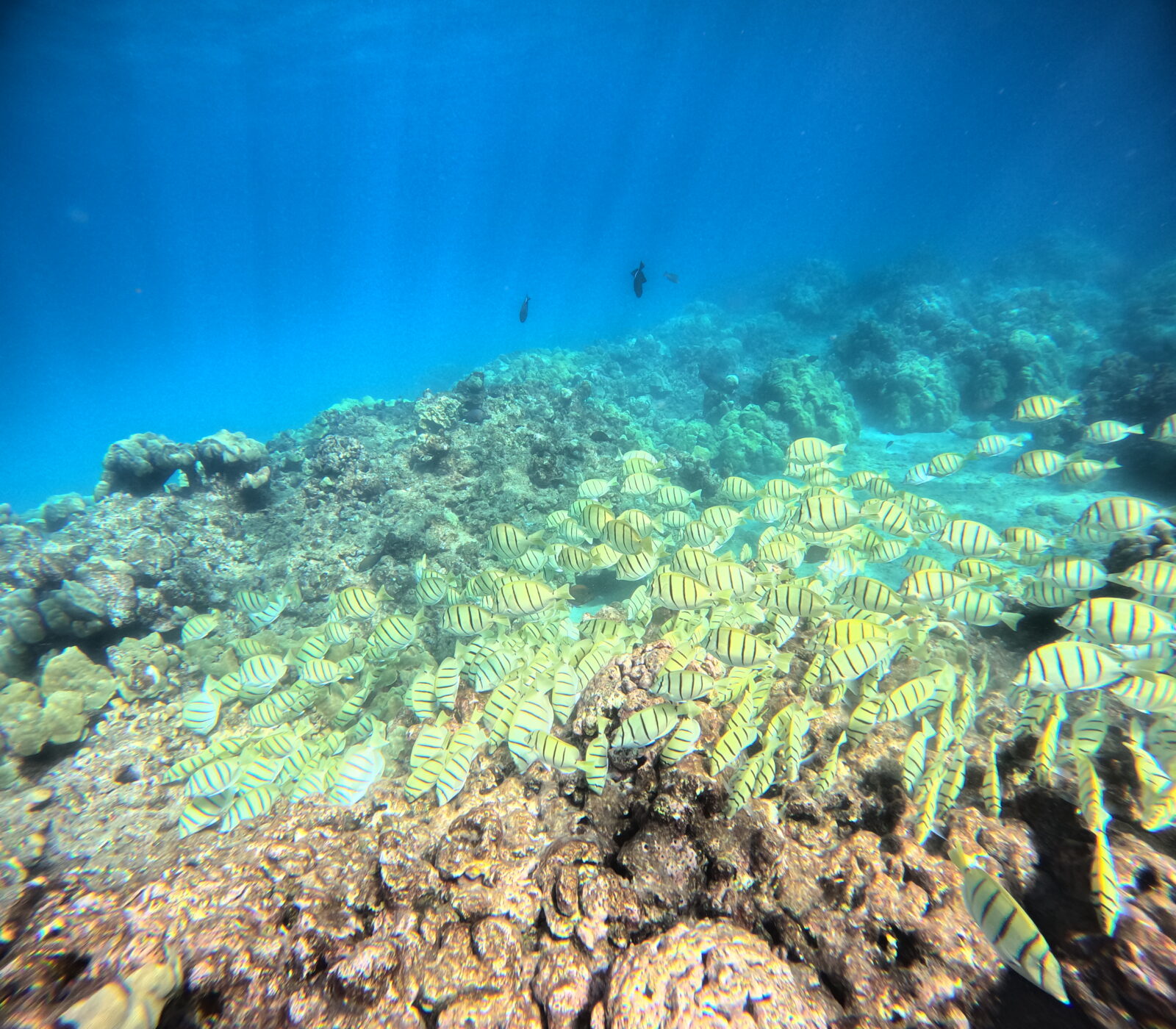 ほぼ初シュノーケリングのお二人は、とっても上手だったのでハナウマ湾の沖合へ!幸運を呼ぶホヌ様、発見!