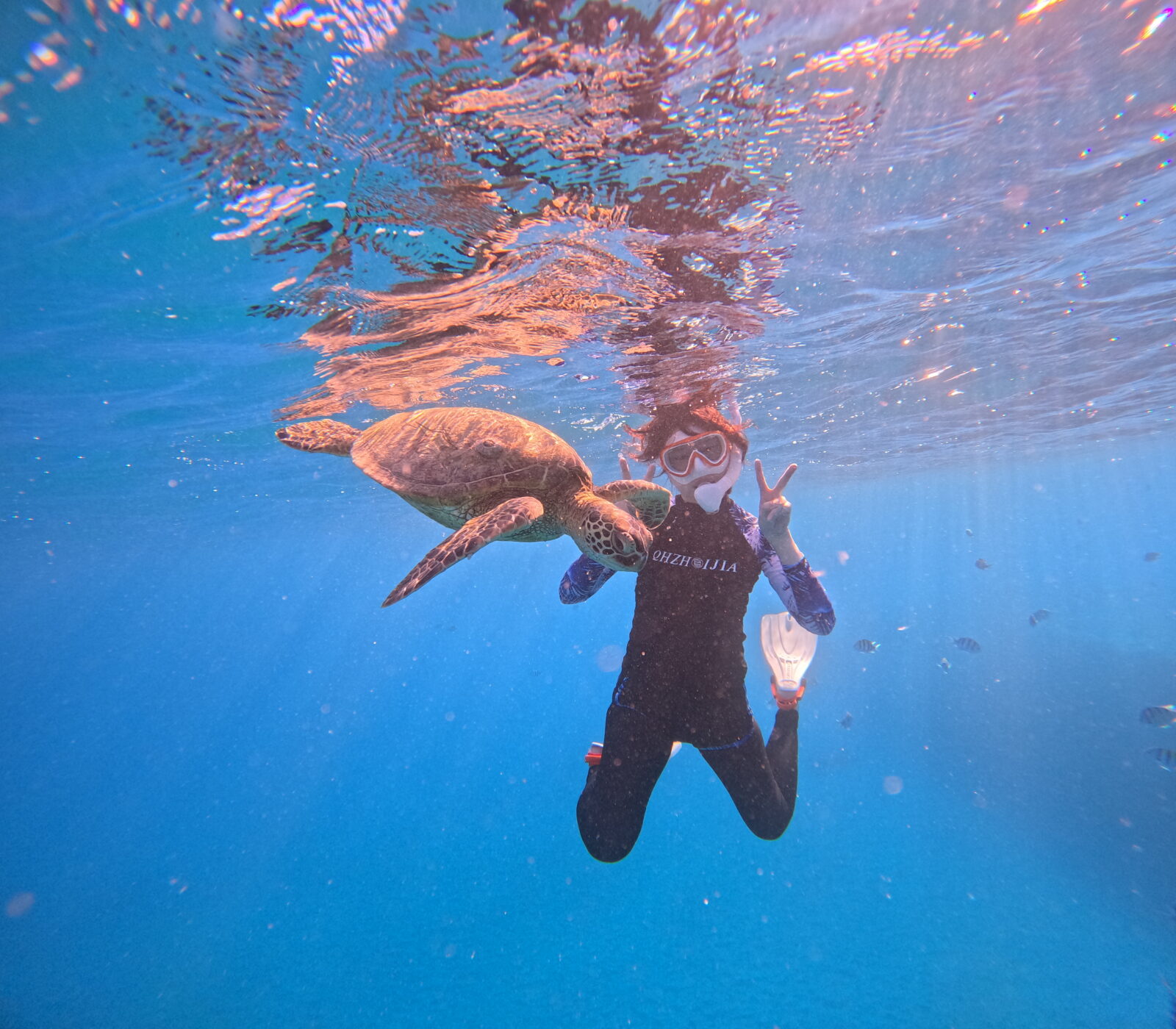 幸運を呼ぶホヌ様は、水中からご対面したり…