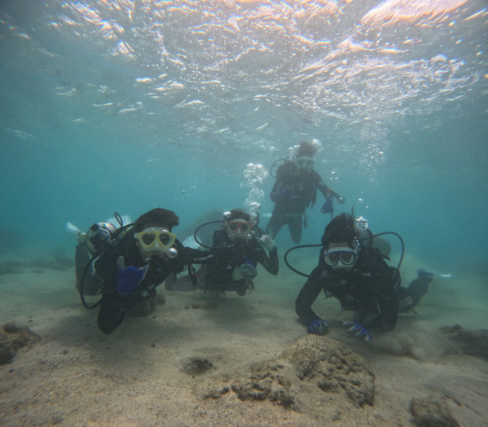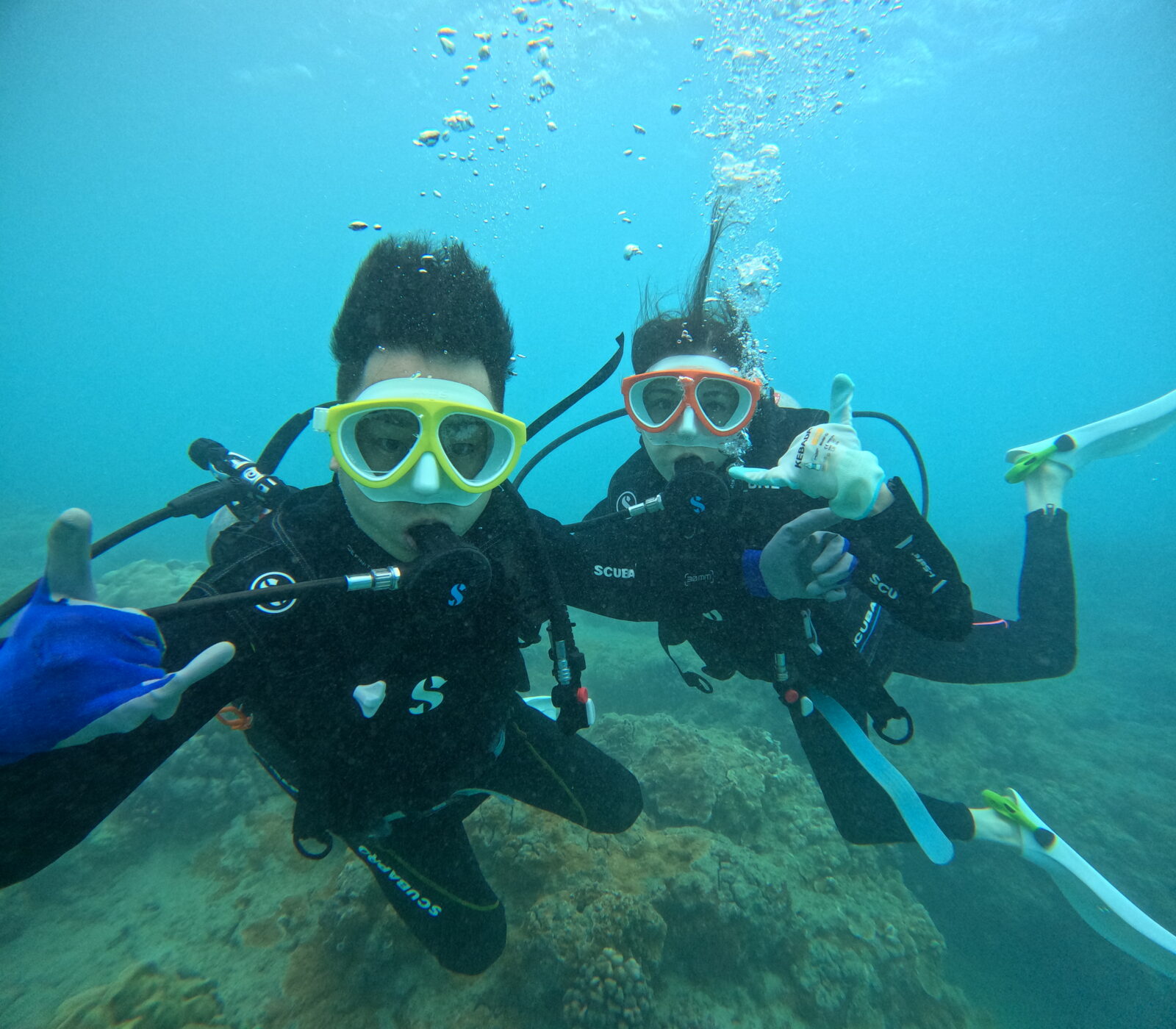 4名中3名が体験ダイビング経験者というだけあり、あっという間にハナウマ湾の水中世界へ!