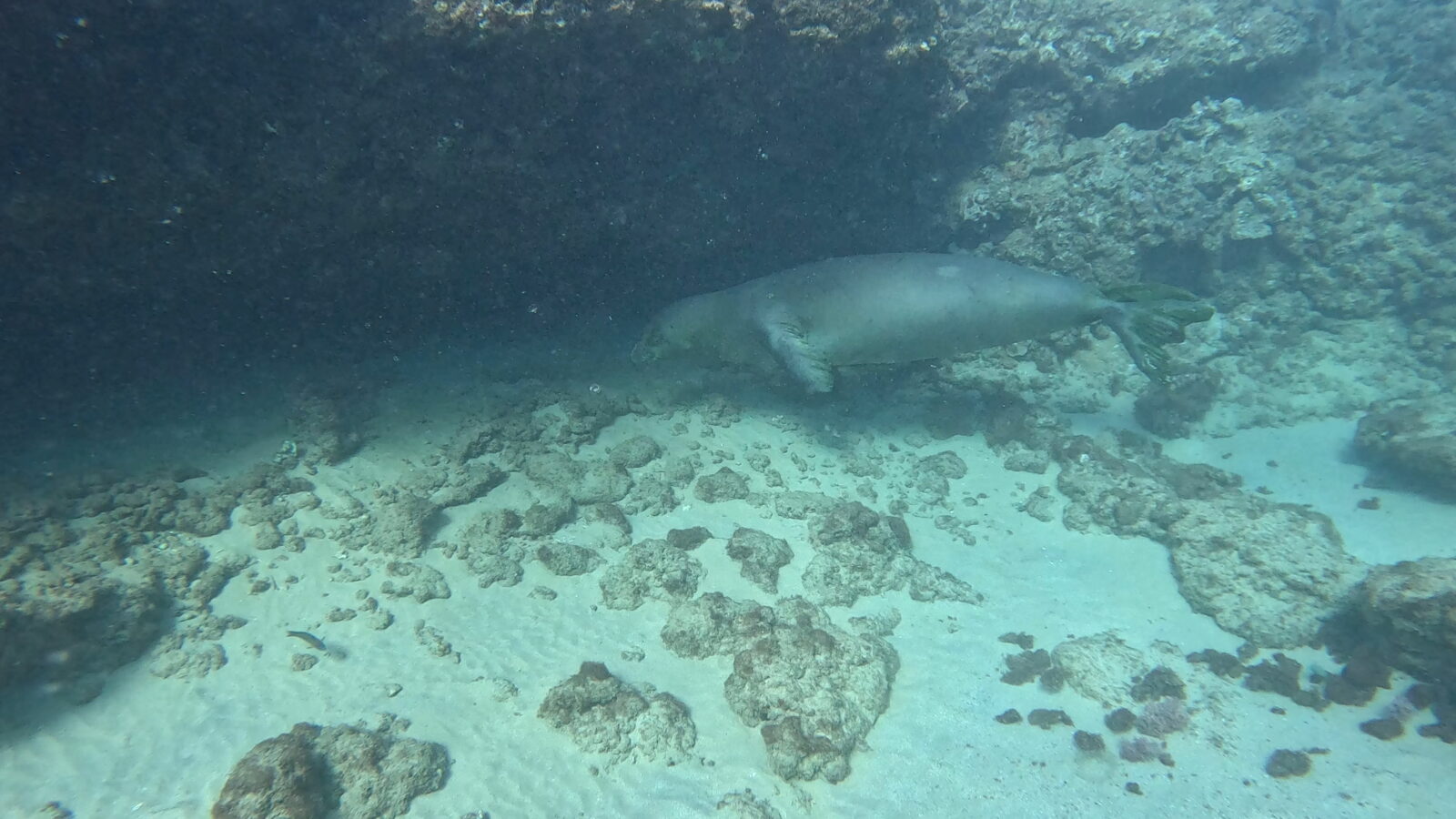 岩陰に戻ってくる絶滅危惧種のハワイアンモンクシールに会えました!ラッキー!