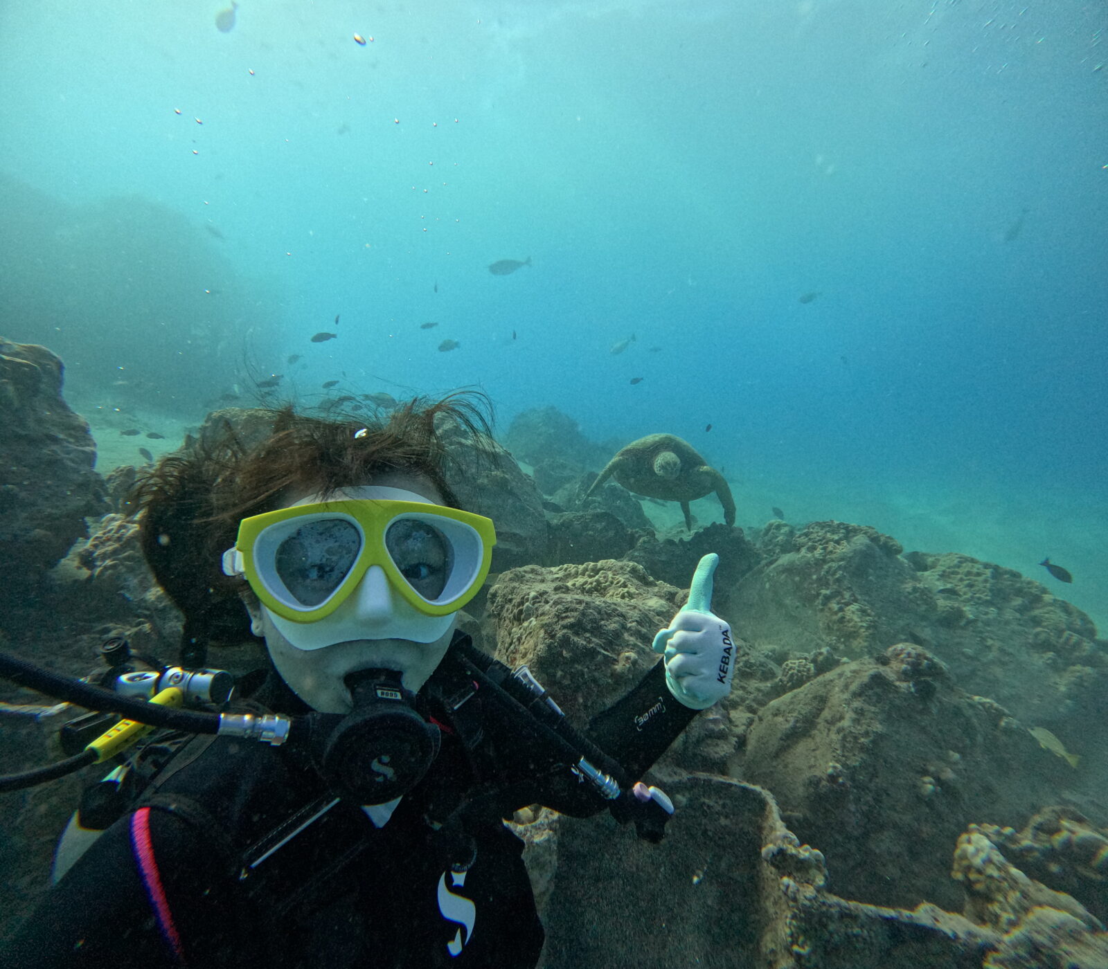 沖合では、幸運を呼ぶホヌ様が気持ちよさそうに、水中を漂ってました!