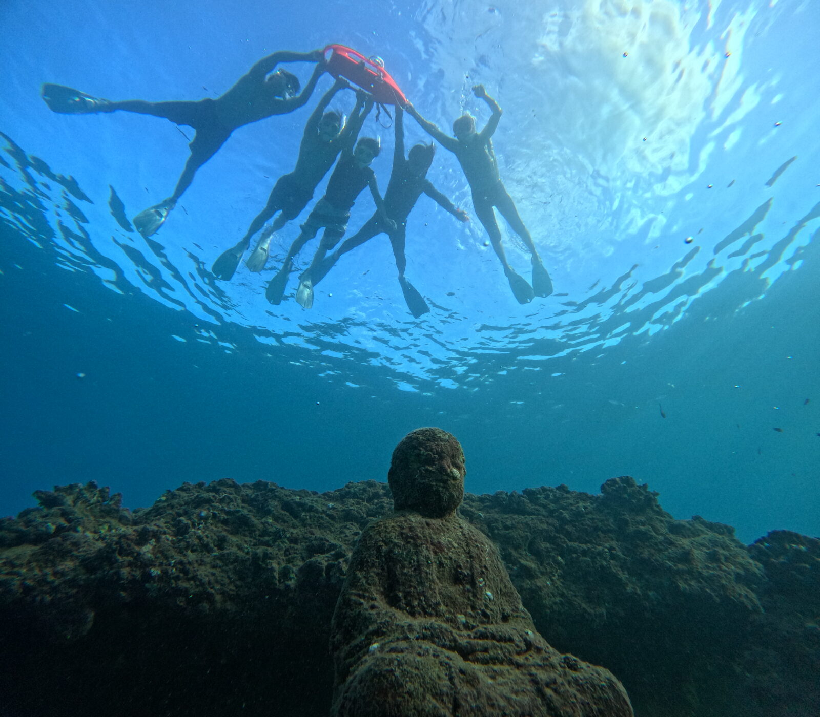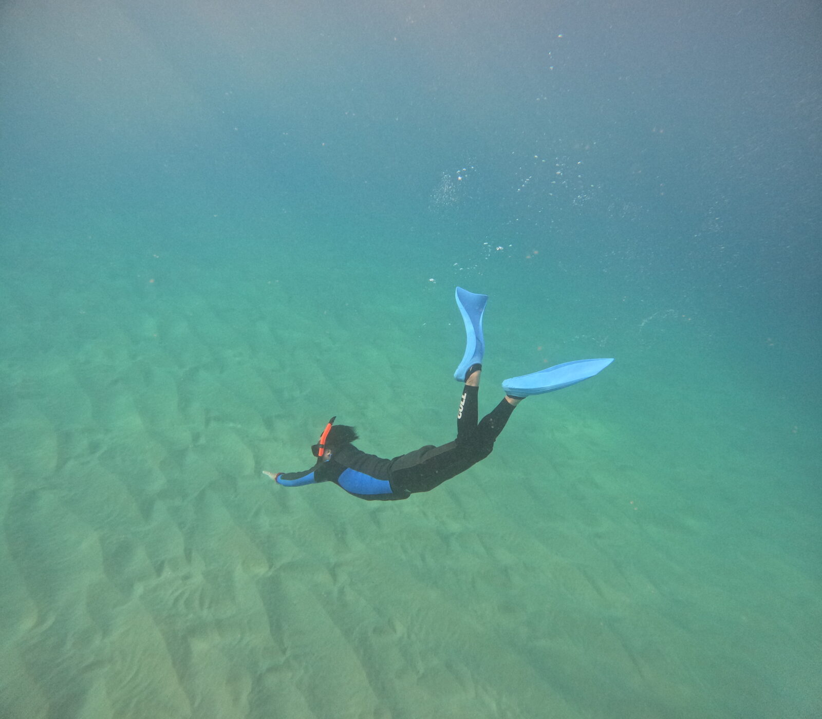 少し波のあるコンディションでしたが、海慣れも出来ておりシュノーケリング経験者の皆様には、No Problem! まずは、3Mほどの深さからダイブ!