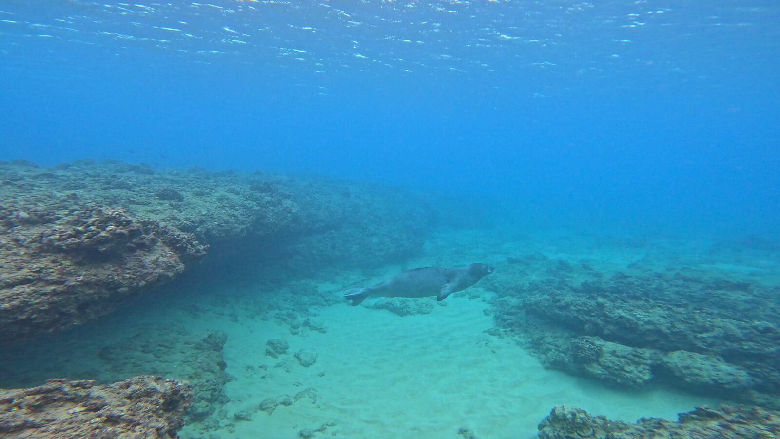いつもの場所に、ハワイアンモンクシールが!一瞬ではありましたが、会うことができました!ラッキーなお二人!