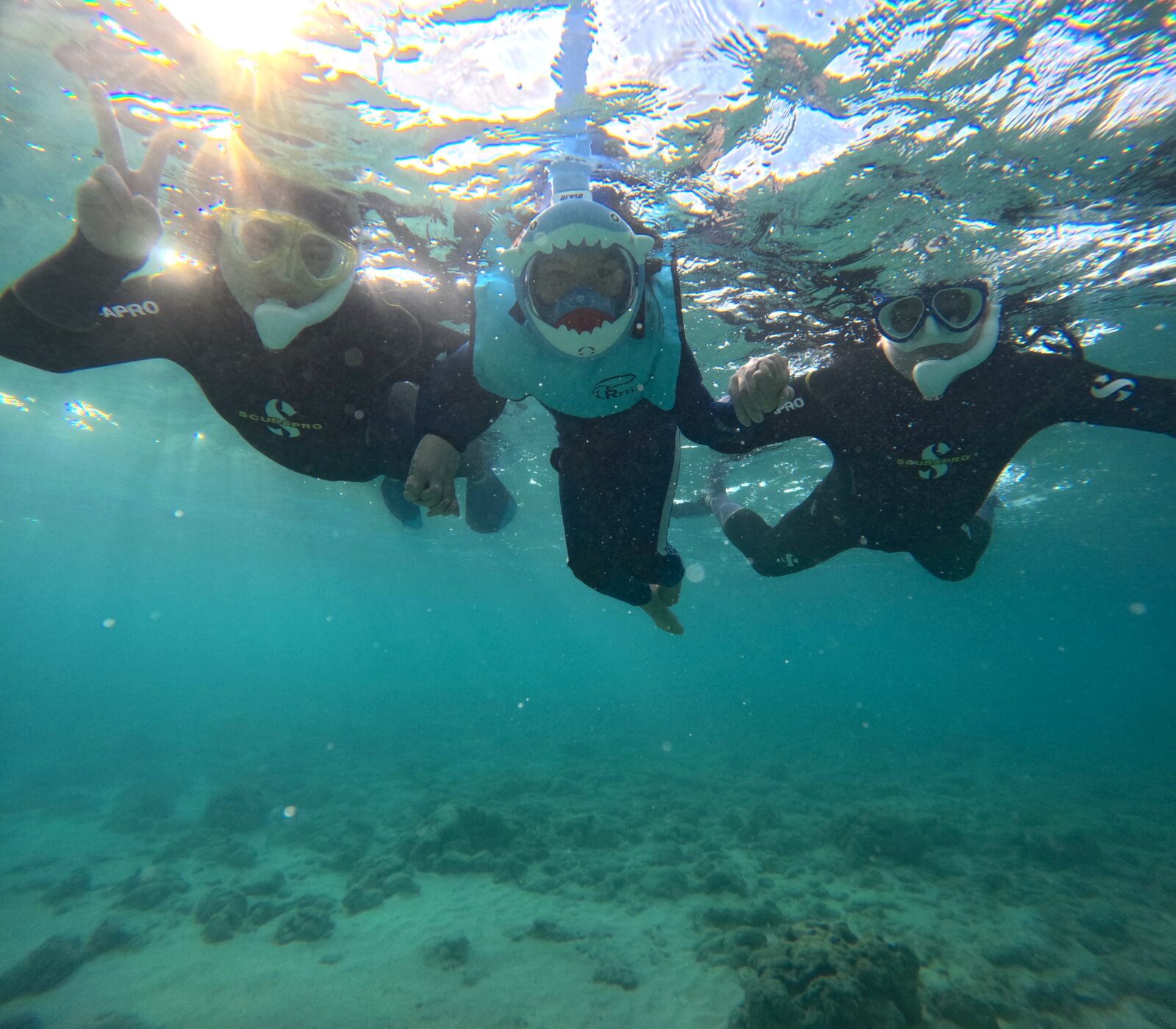 シュノーケルデビューがストレスにならないよう、ご両親と相談しフルフェイスマスクで挑戦!