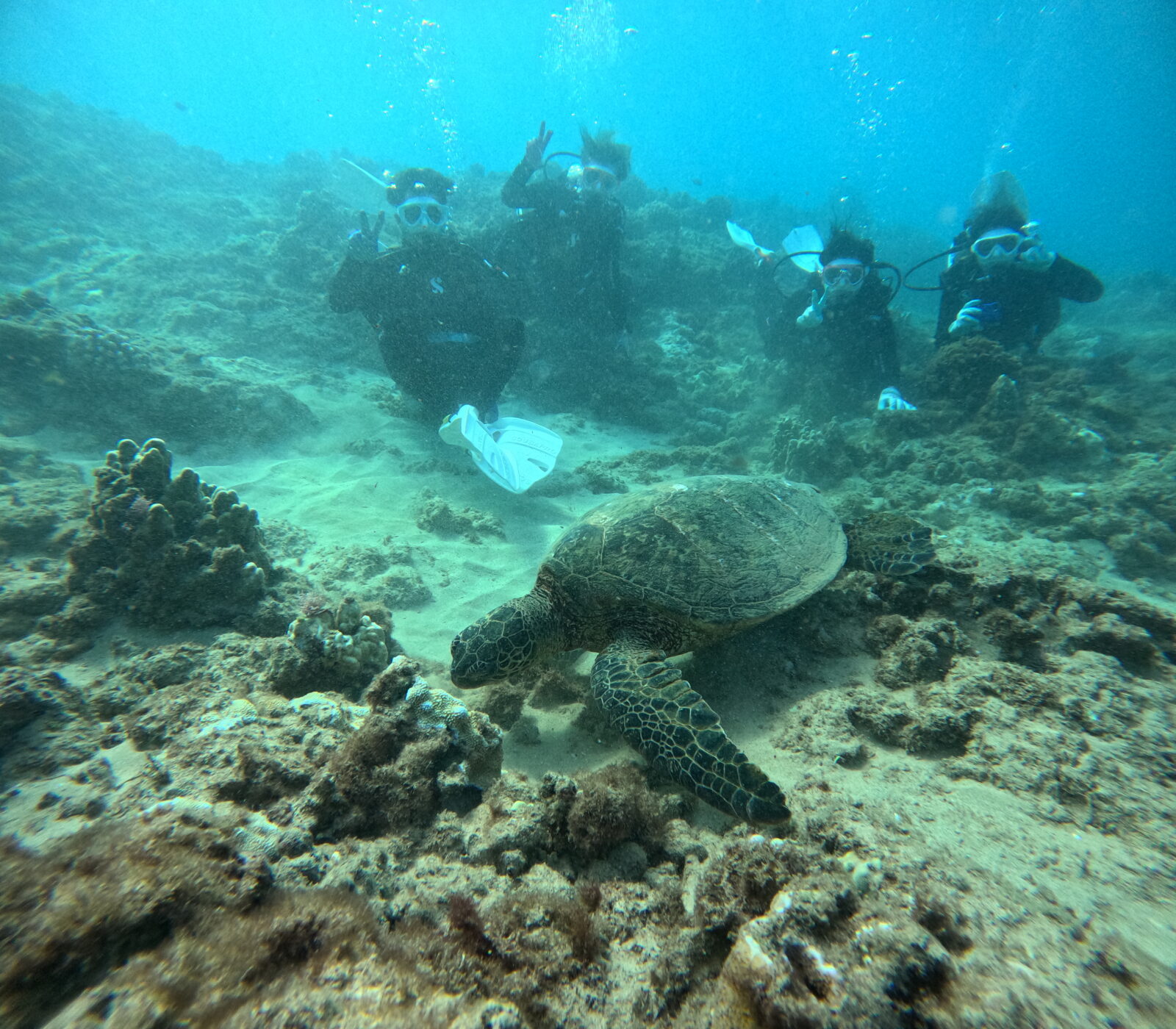 水中ではイルカの鳴き声を聞きながら、幸運を呼ぶホヌ様にも会えました!