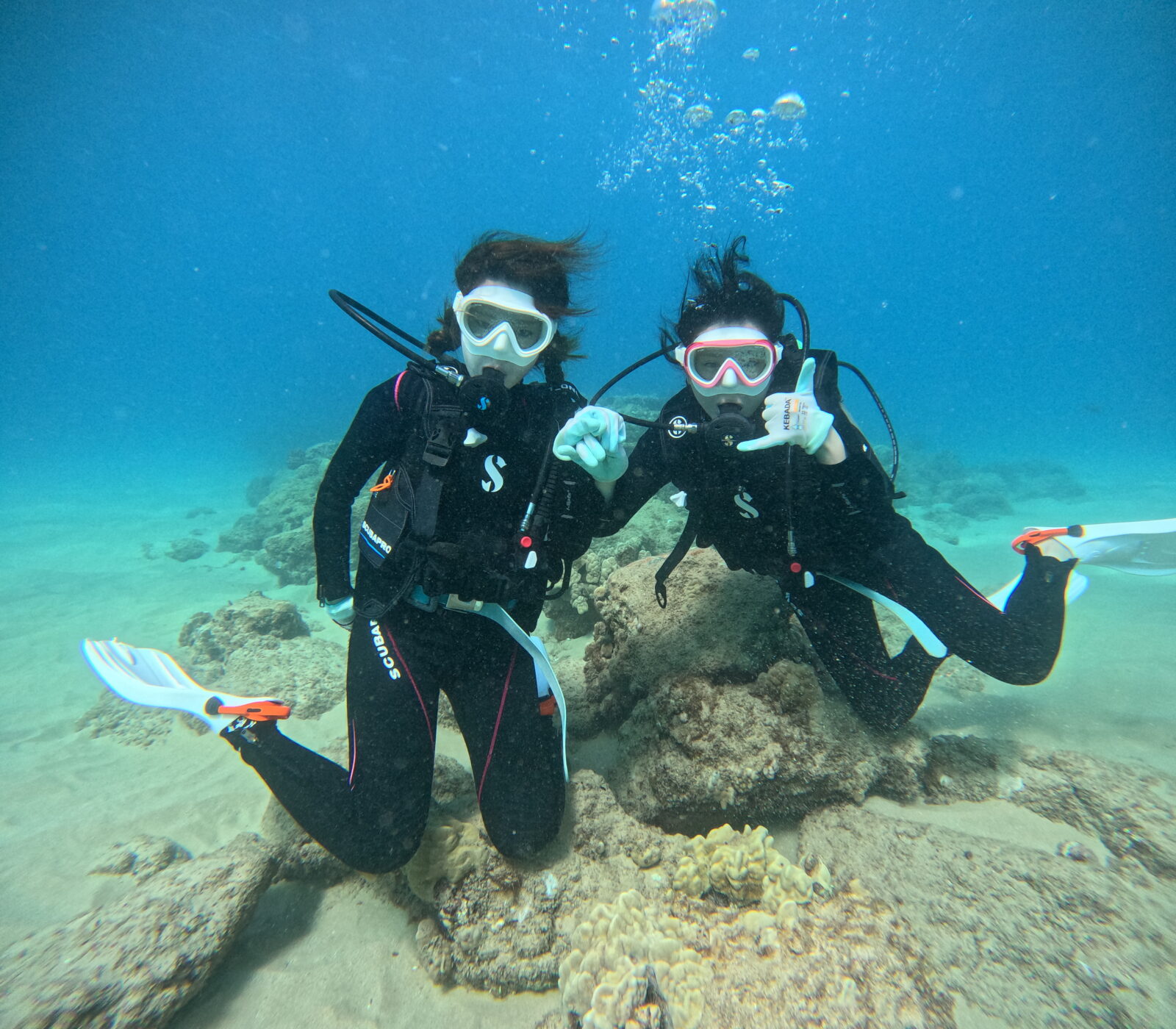 波もなく、ダイビング日和!口呼吸マスターに苦戦したお母様が挫けそうになりましたが、ご家族全員、西オアフの水中へ!