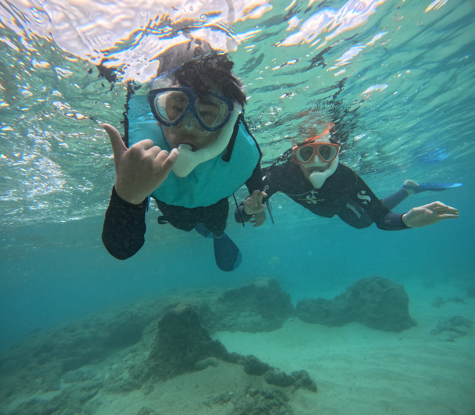 家族皆さんの初シュノーケル、大成功!とっても上手にできました!