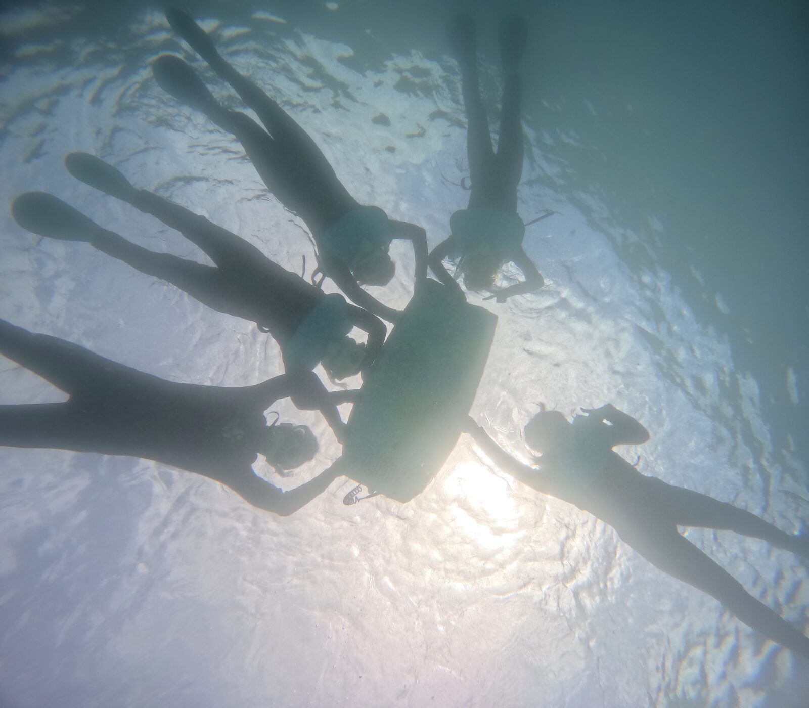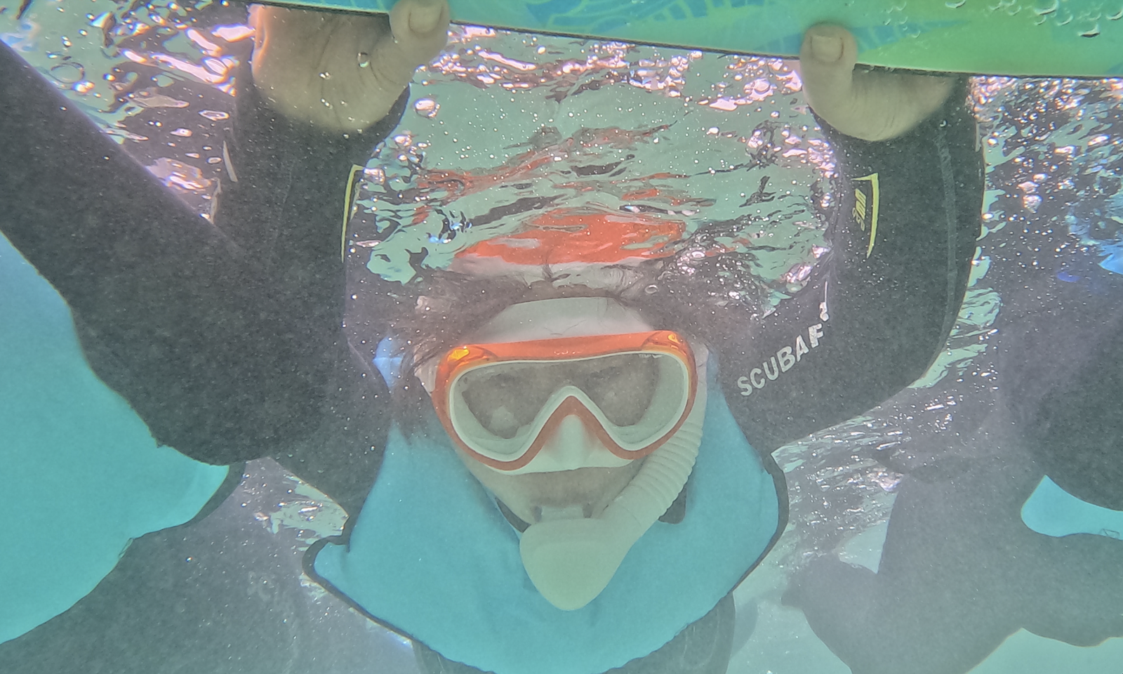 満潮の影響で少し波&濁りがありましたが、80代お祖母様の初シュノーケルもこの通り!