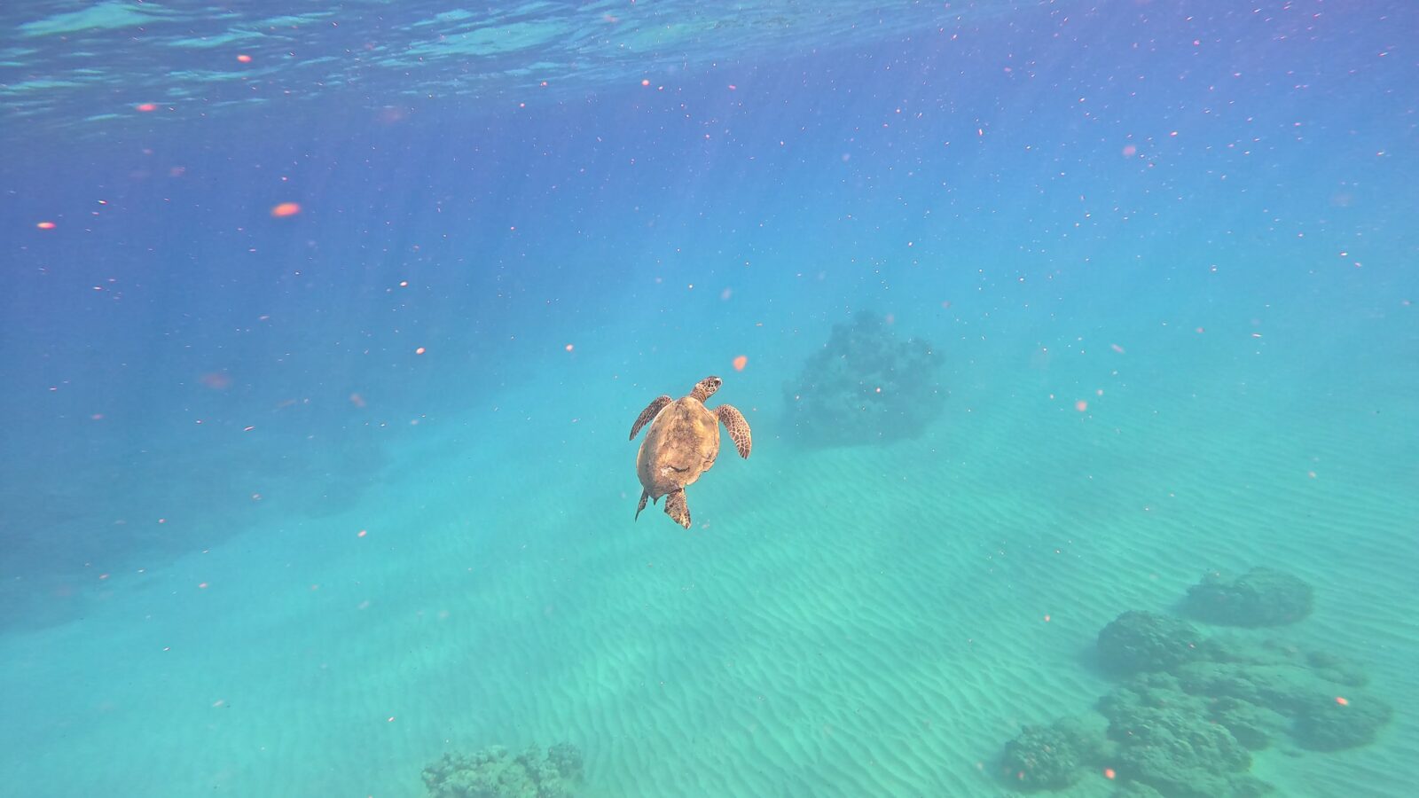 休憩後は、ハナウマ湾の沖合へ!念願だった幸運を呼ぶホヌ様には、3匹に会えました!ラッキー