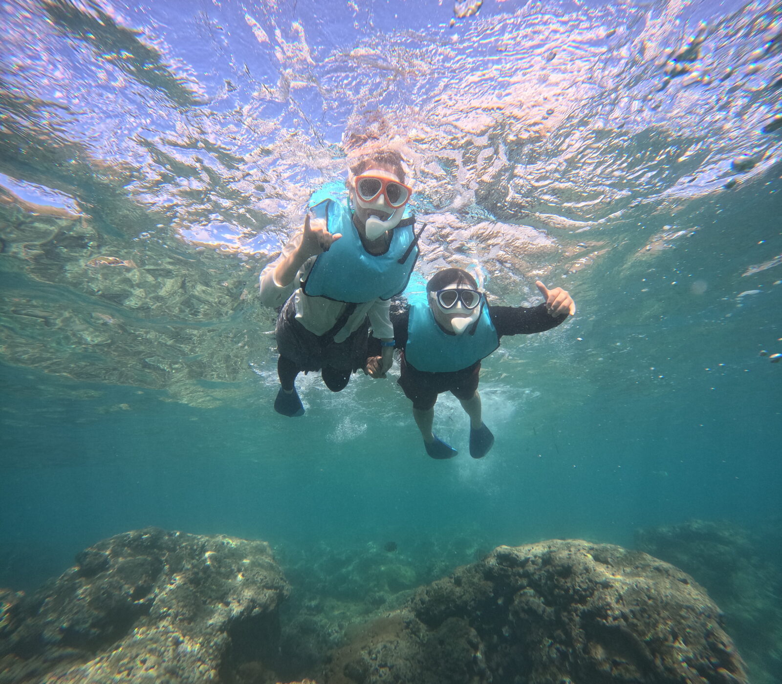 浅瀬から少しずつ慣らしていき、足のつかない深場でも余裕のアロハ頂きました!
