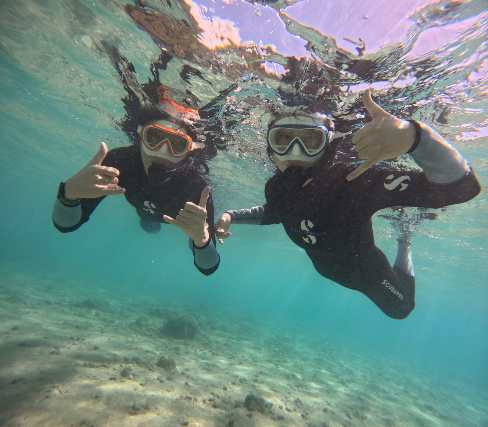 海大好きなお二人だけあり、練習もそこそこに早速シュノーケリングスタート!