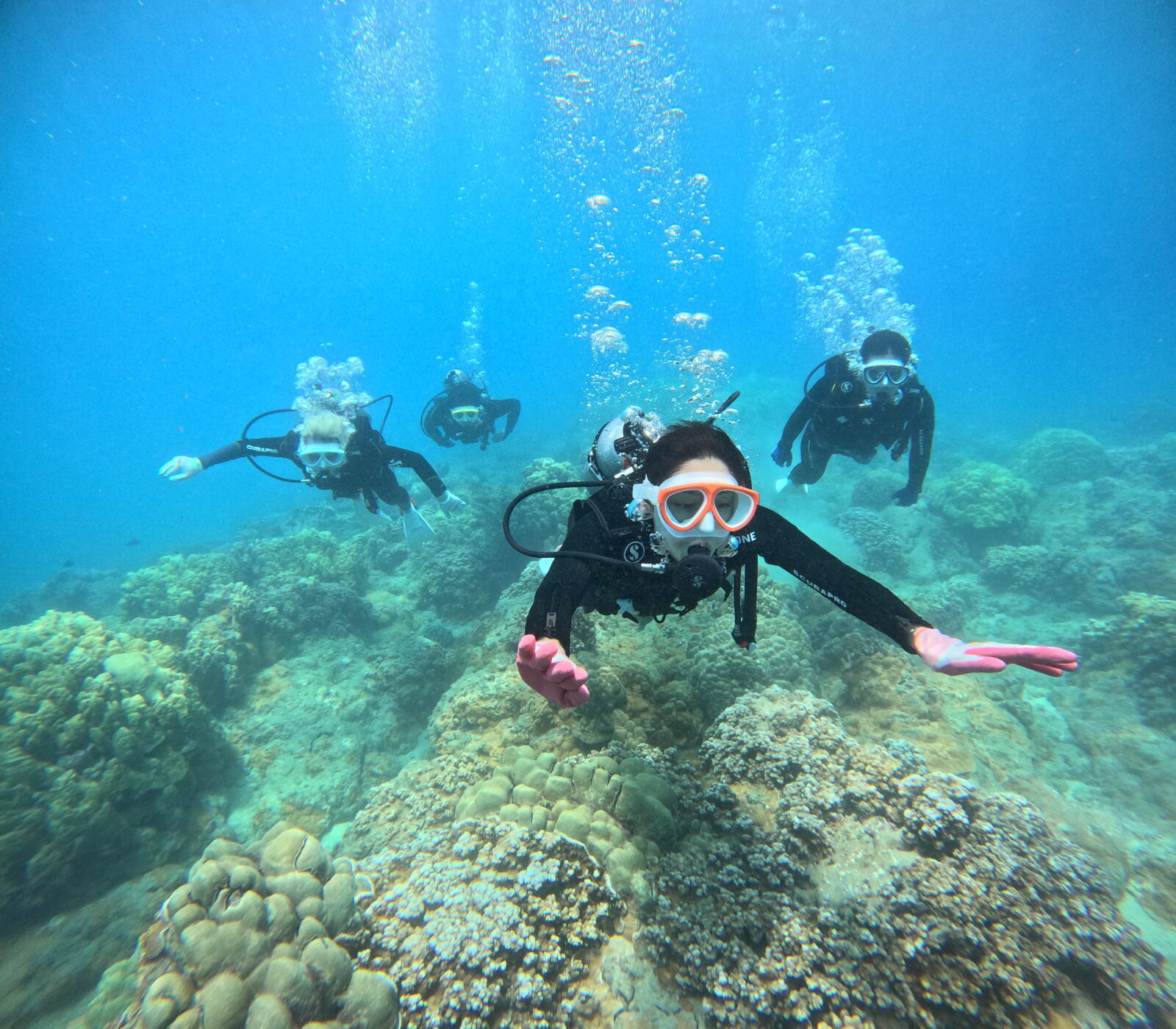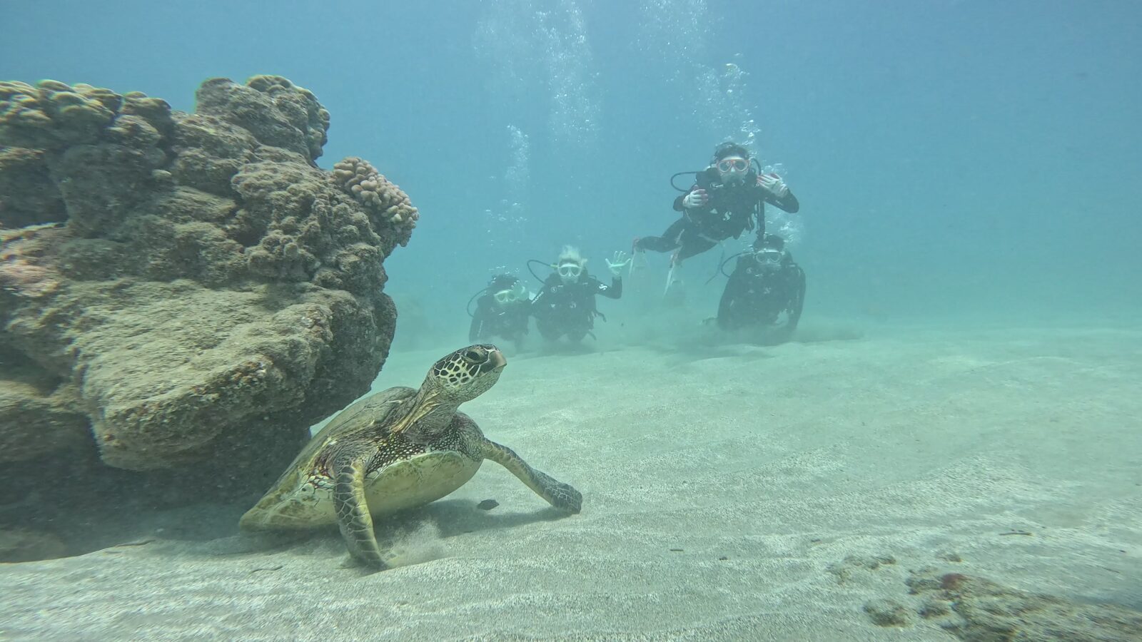 初ハワイの皆様は、女性陣のリクエストでダイビングに参加!綺麗と有名なハナウマ湾へご案内致しました!