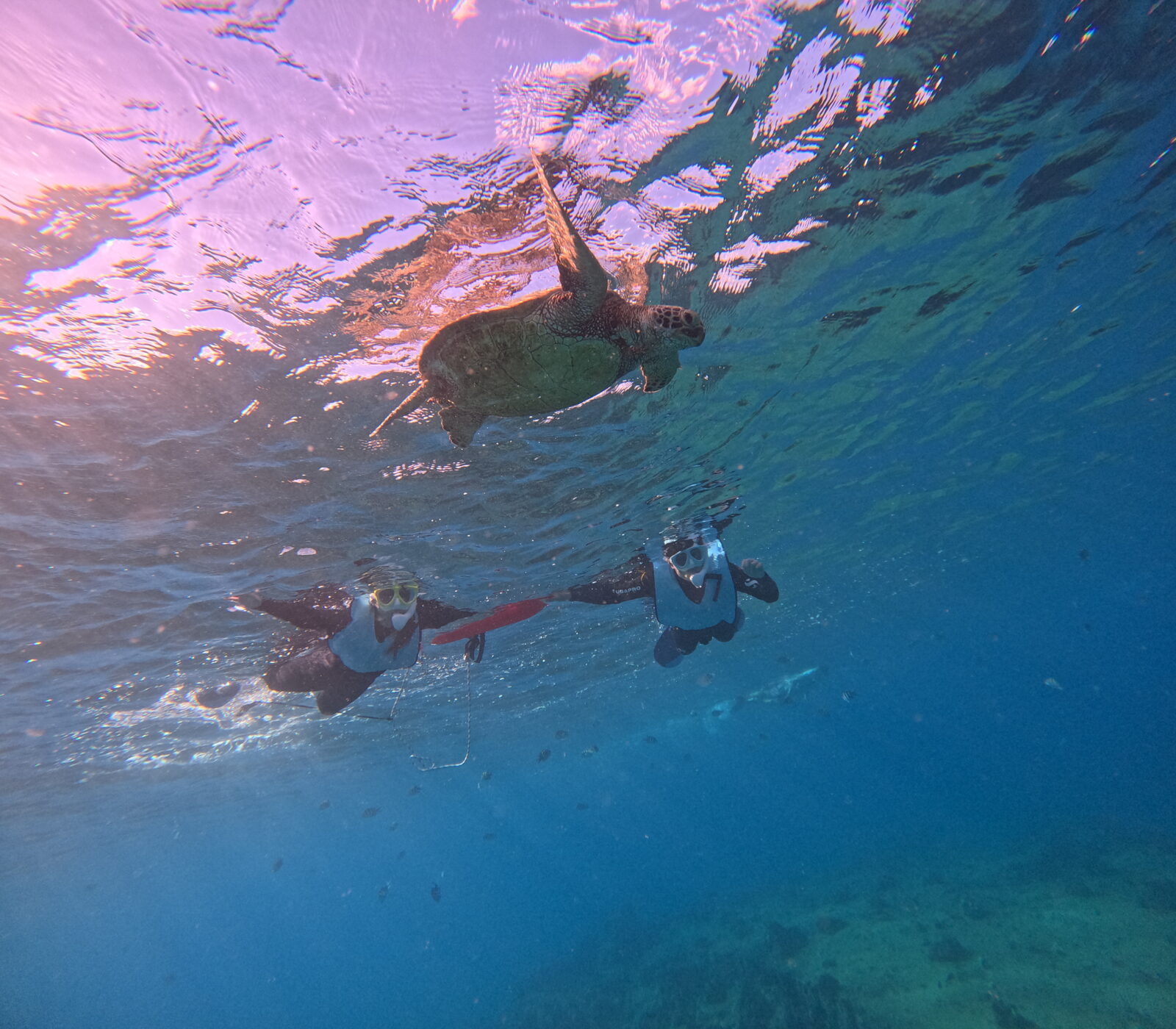 幸運を呼ぶホヌ様は、トータル4匹とマダラトビエイ3枚が一緒に泳いでいる姿も見ることが出来ました!ラッキー!