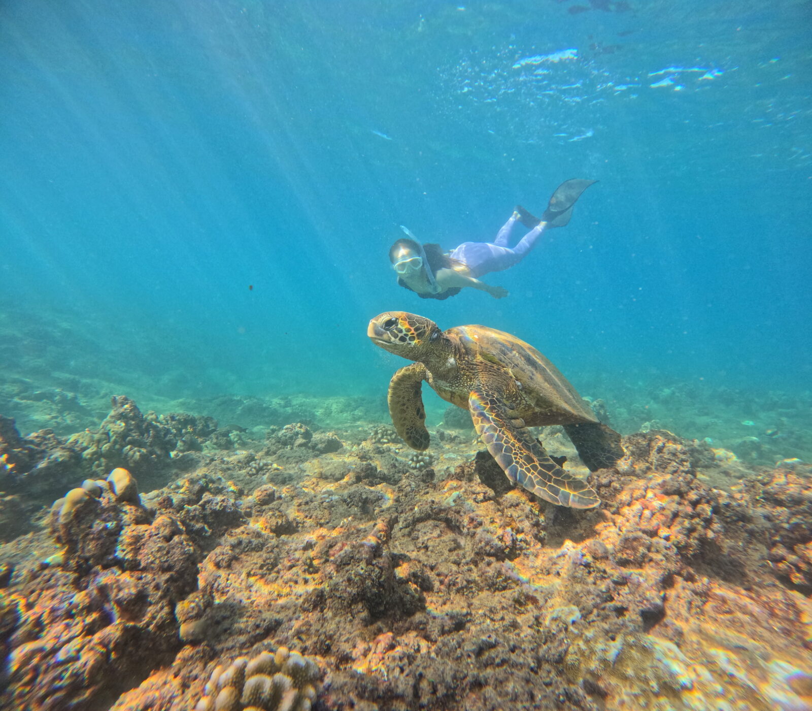 少し波があり、パーフェクトな透明度ではありませんでしたが、幸運を呼ぶホヌ様がお出迎えしてくれました!