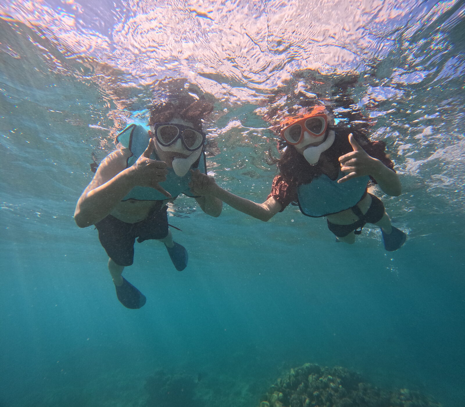 お二人ともシュノーケリング経験者だったので、あっという間にハナウマ湾の水中世界へ!