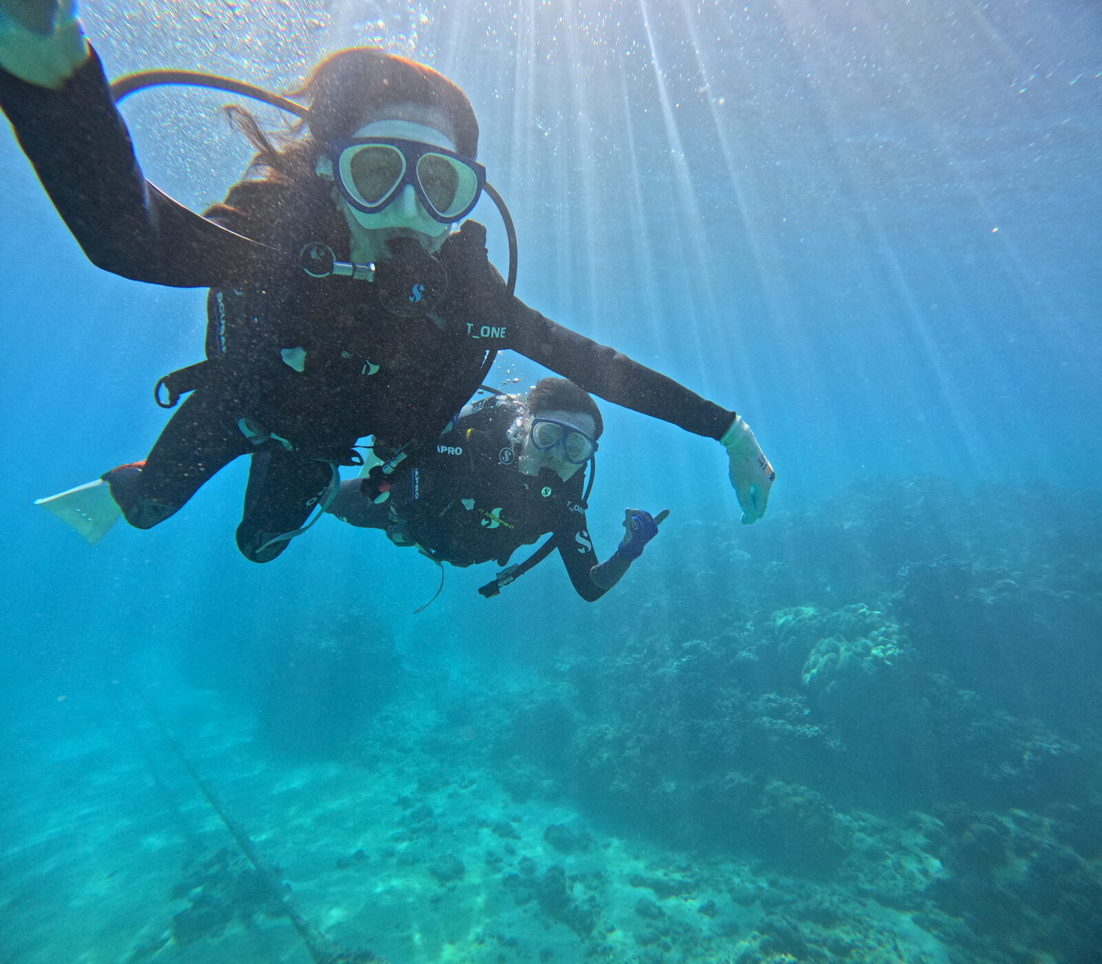 お天気良好!波&流れなし!浅瀬でしっかり練習をしたら、ダイビングスタート!ハナウマ湾の沖合は、抜群の透明度!