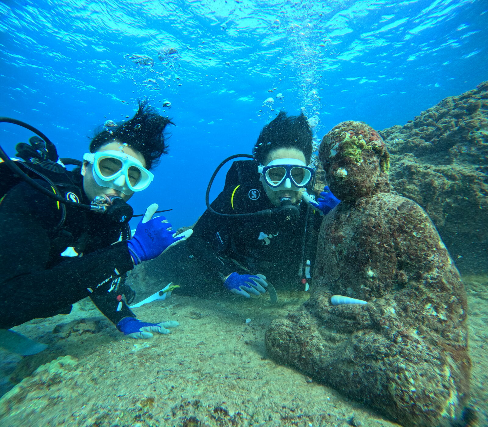 風は強かったものの、波もなく透明度もVery Good! まずは水中ブッタ様に、ご挨拶しました!