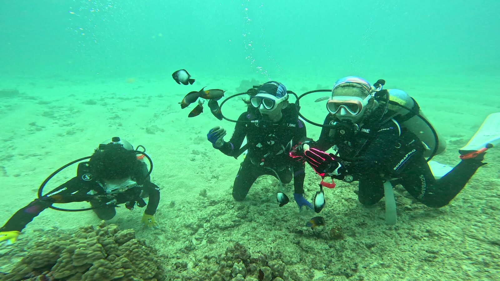 息子さんお二人とも、とっても上手!ハワイ固有種ハワイアンダッシラスに餌やり体験もしました。
