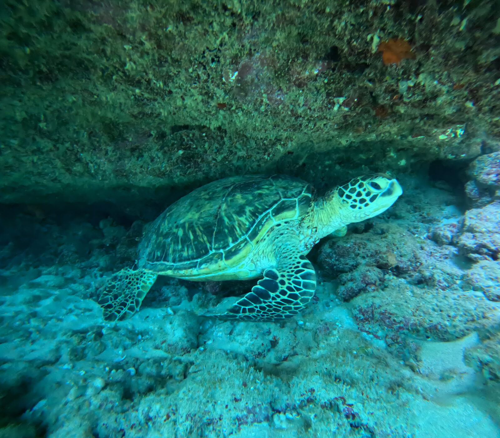 幸運を呼ぶホヌ様は、岩陰でゆっくりと休憩中でした!